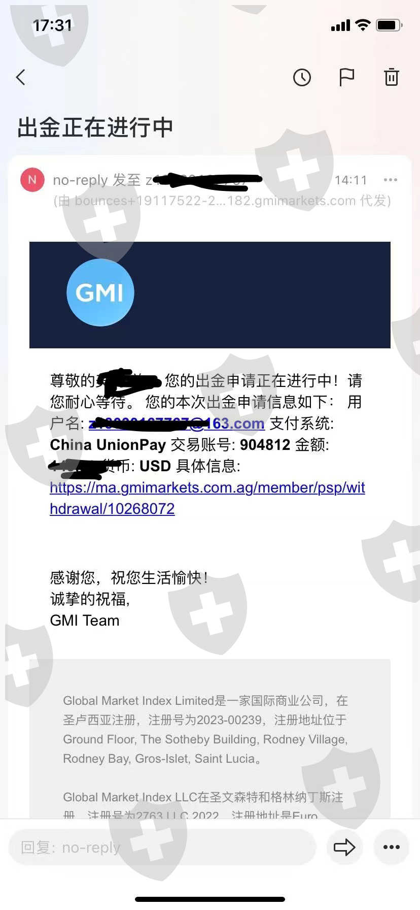 GMI无任何理由拖着八月份佣金七千三百三十多美金的不给给算.今天我把帐号里仅剩的一百多美金提交出金.然后问客服和客户经理结算情况可没想到就过了一个多小时就收到邮件说我的帐户归档.后台和mt4全部登录不了了。