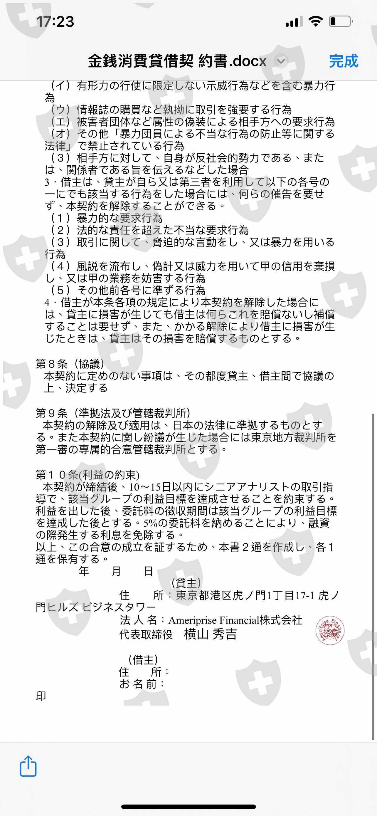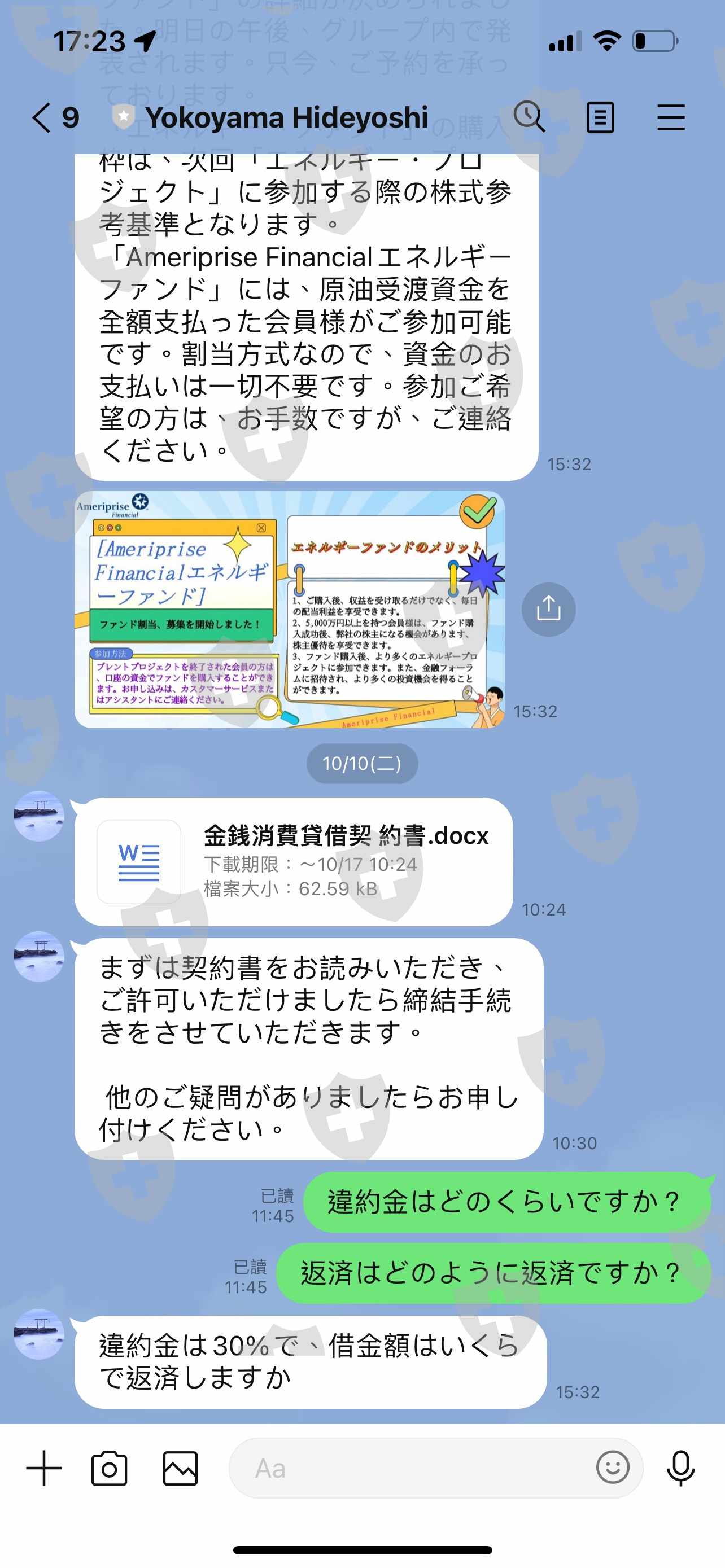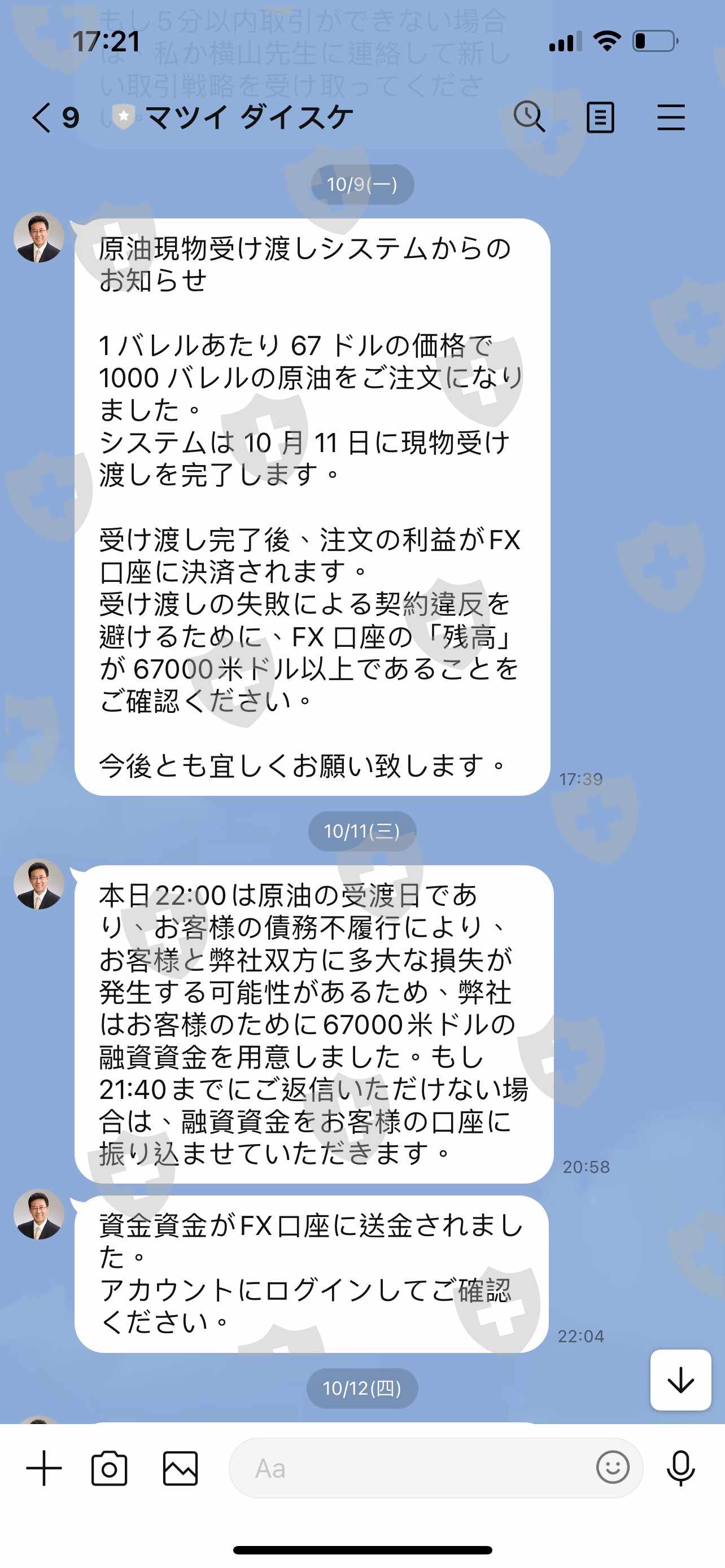 第一次購買原油有審核當事人的資金在做推薦、第二次的購買卻沒有做資金的審核直接購買了1000的數量導致交易時資金不足、交易時造成違約的狀況、因為契約內容有所疑慮、所以沒有簽約、但公司直接簽訂融資契約、直接匯款67000美金到Ameriprise 的公司帳戶、想請客服幫忙解決問題