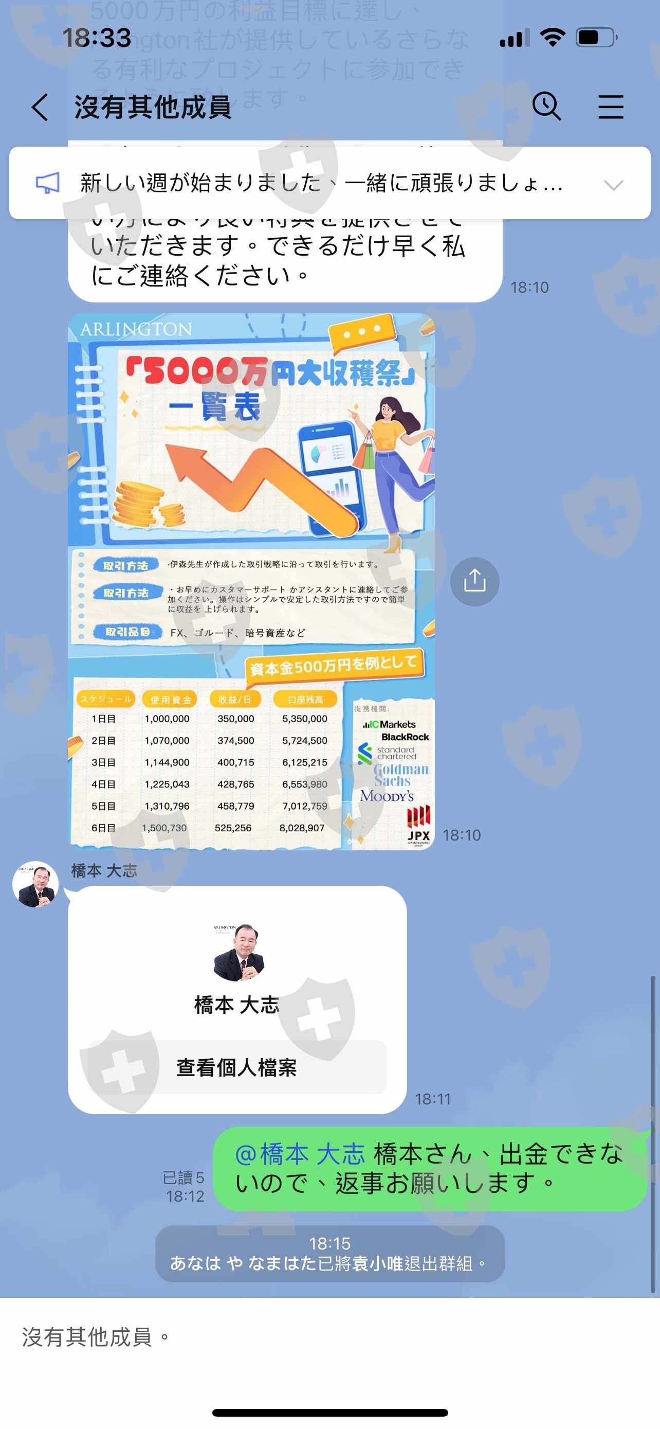 我无法提现,联系的人也没有回复,所以我被踢出了群。