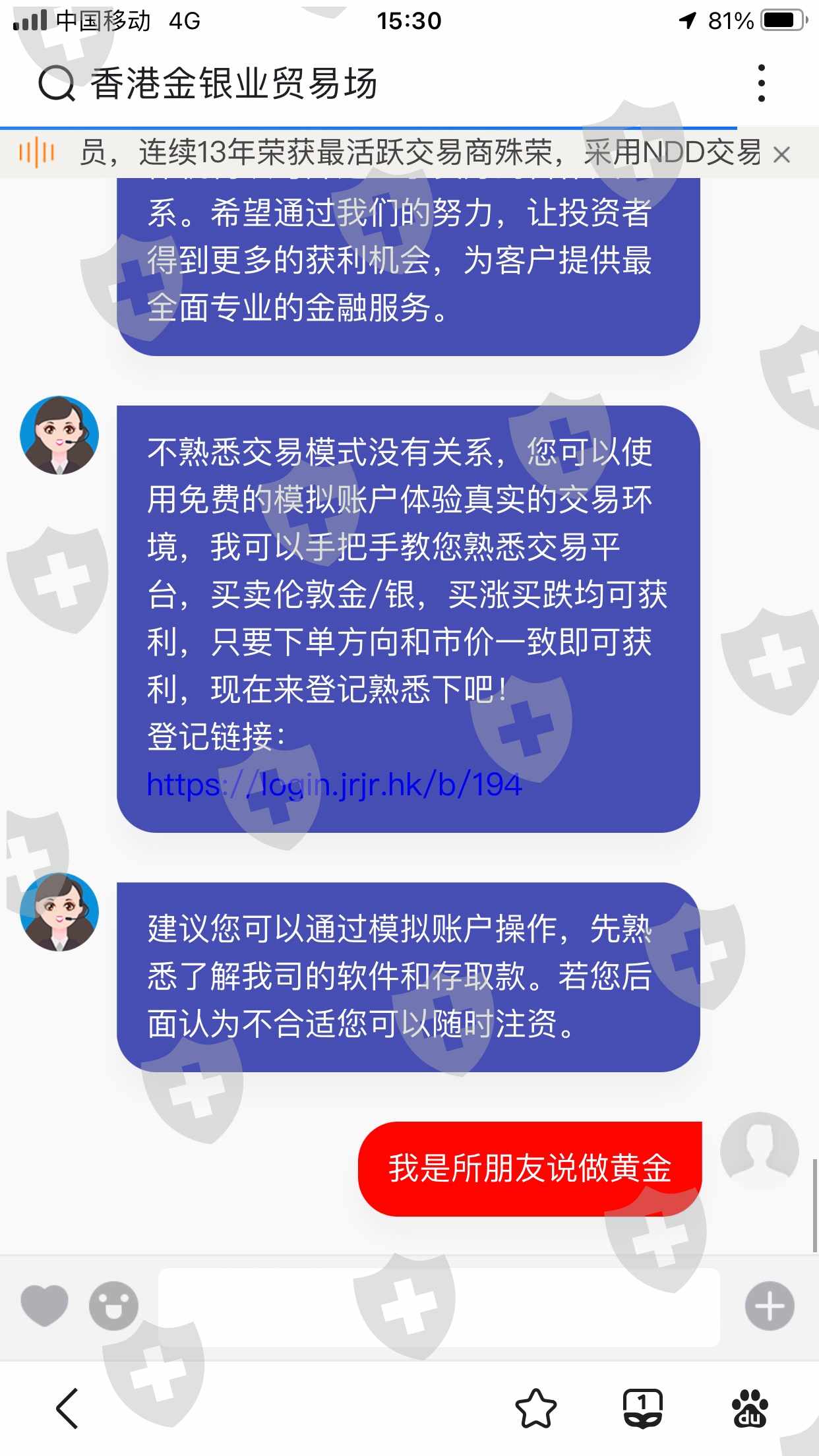 虚假宣传、双点差50、无证府监管、只是民间金银贸易业组织、当帐户发生风险时永远入不了金、导致爆仓、己向香港证监会发起投诉、朋友远离这个平台赶紧出金、