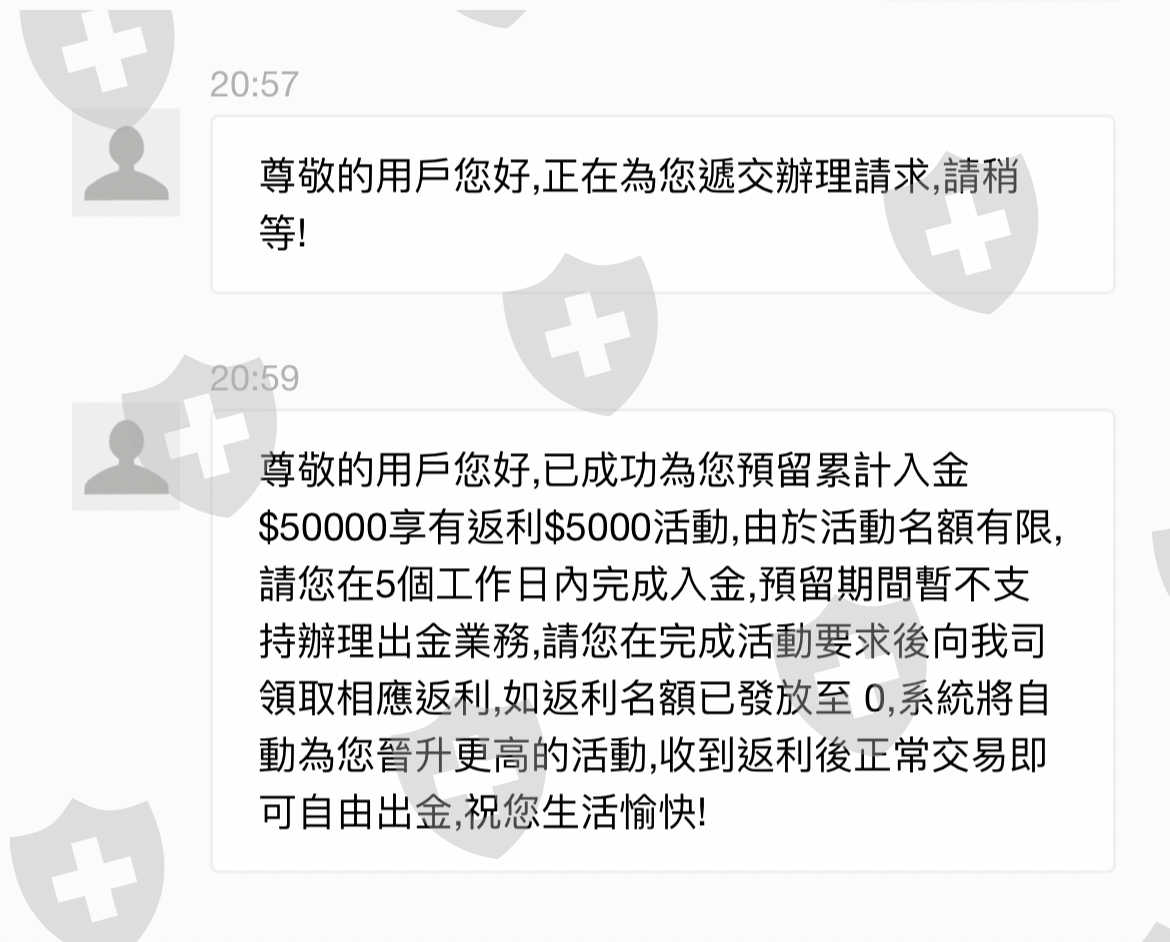 本人參加其新人活動,但因不能完成入金,向客服說要取消活動名額,但客服卻一直堅持要完成入金,而其活動內的條款整其不公平,而在此活動期間會凍結本人戶口直至完成入金額並取得利返後成功得取利返3倍流水賬才可自由出金,本人覺得這是欺詐及套局,是殺豬盤,一直與客服交涉都未能取消活動名額,並且凍結本人戶口資金,亦沒有其他解決方案