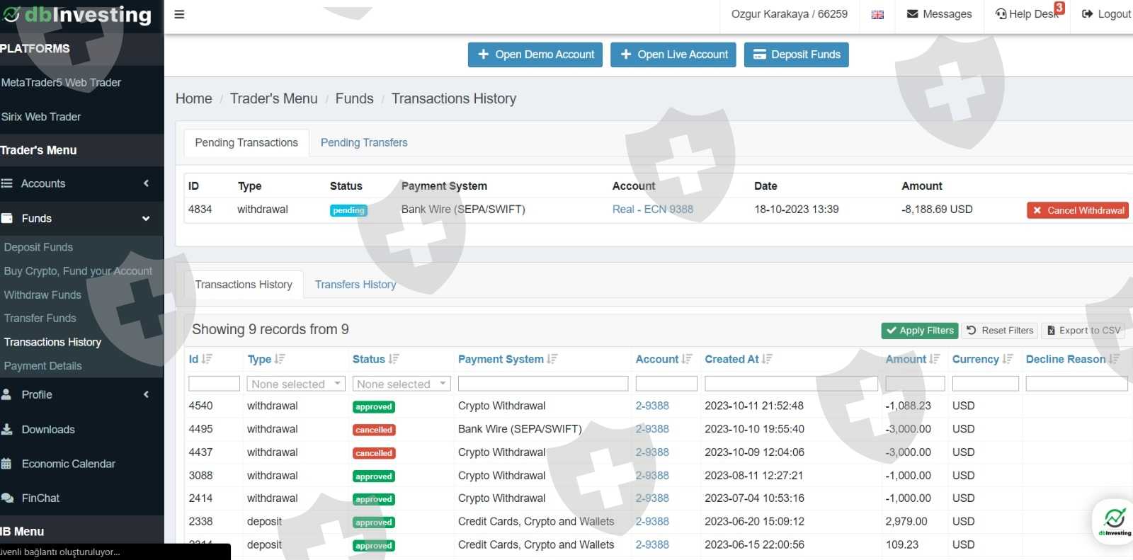 This company does not approve my withdrawal for about 12 days. 12 days ago I sent a withdrawal request for 3000 usd. Then they asked me again for the financial documents I had previously provided. Although I sent these documents, they sent the part of the money I deposited, which was 1088 usd, with the usdt crypto payment system, and they said that they would send the remaining part, ie 2000 usd, through the bank. They asked for a bank account statement about this and I sent it. Despite sending all kinds of documents, they do not send me the 8188 usd part of my profit. They do not approve my 8188 withdrawal request that I sent 5 days ago. I can't reach the company at any contact number. They don't provide any feedback. This company is a fraudulent company stay away !!!