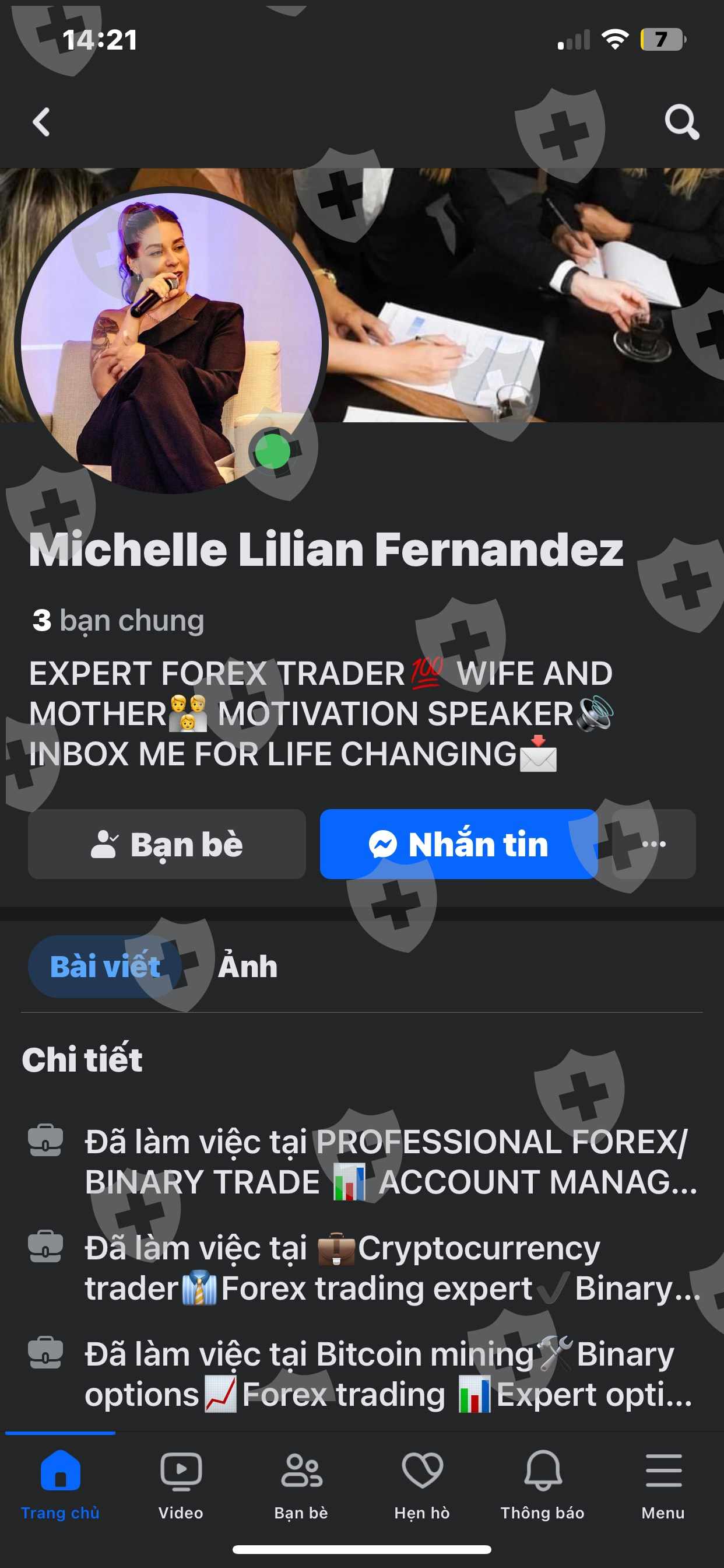 这个女人在假场上引诱人们参与外汇市场。我付给她公司3000美元。