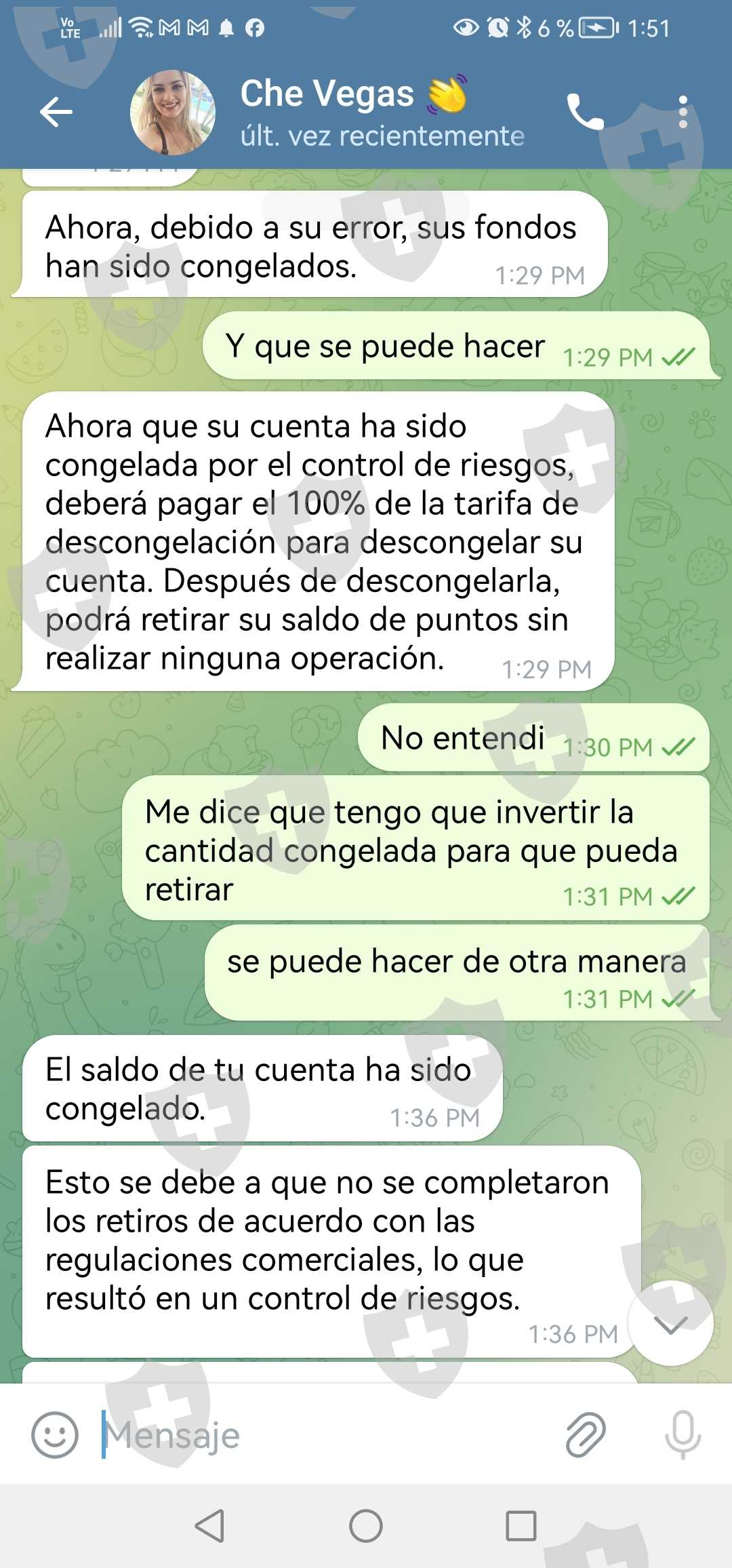 请帮忙,输入一组我设法完成的任务,但在提款时,进行第二次提款时,顾问告诉我,我不应该要求该金额,因为之后贸易监管规则尚未完成,(某事我不知道或不明白)这就是为什么他们冻结我的余额,我必须存入相同金额才能解冻并可以完全提款。我仍然询问顾问我必须如何做以及我必须提款多少。当我遇到错误时,他向我解释。我不知道这是否属实,我不再愿意冒险存入更多资金,因为我不想冒他们会提出另一种情况并且不想退还我的钱的风险。