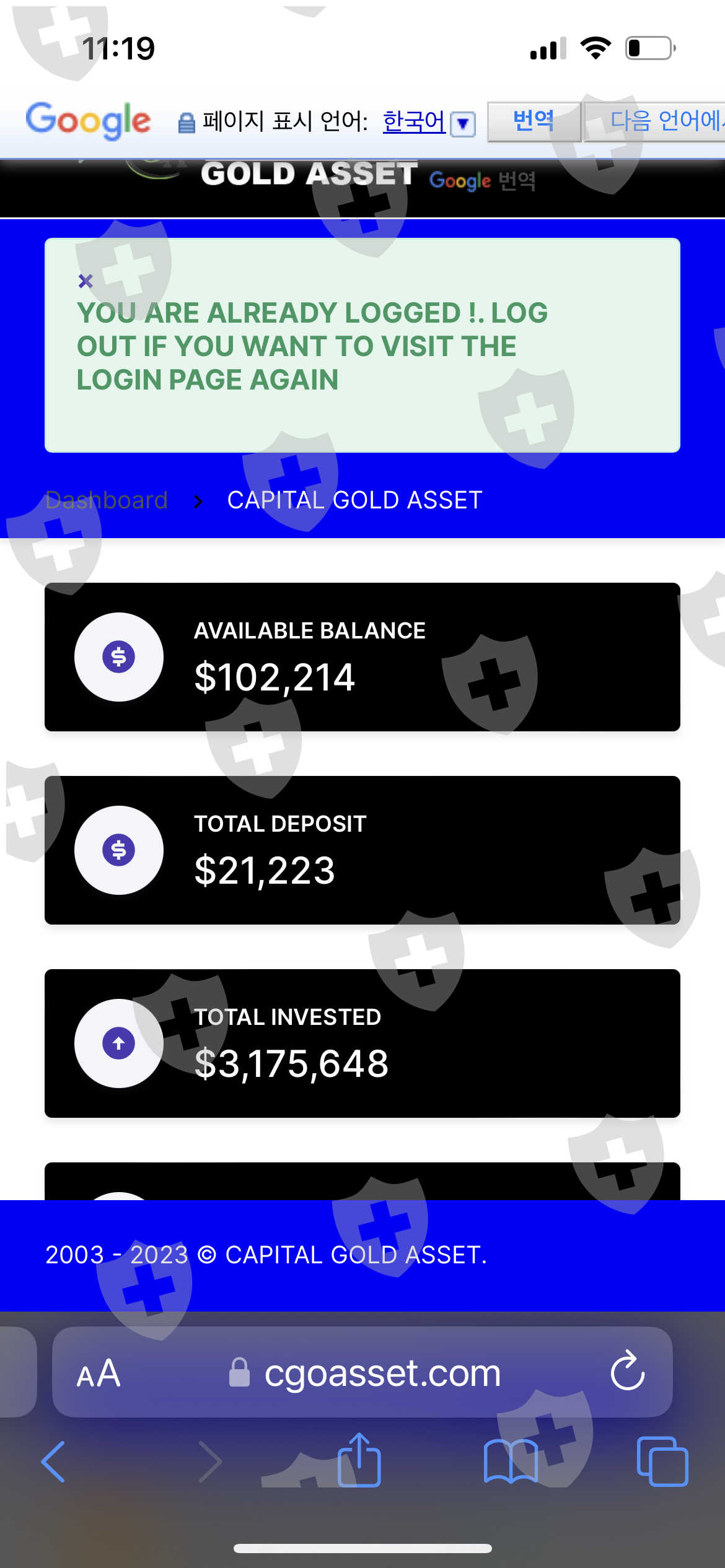 i invested my money to this company, the amount of deposit is $21,000, this is my principal to deposit to this company, Capital Gold Asset, in jun 2023, but the money locked in company which said it is system failure, but in Oct, they gave me a metamsk address, send me some amount of money, it is not actived, said that if i pay the fee which can activate my wallet in Metamask, it must be phishing. so i want to pay back olny my pricipal. not more, please help me,