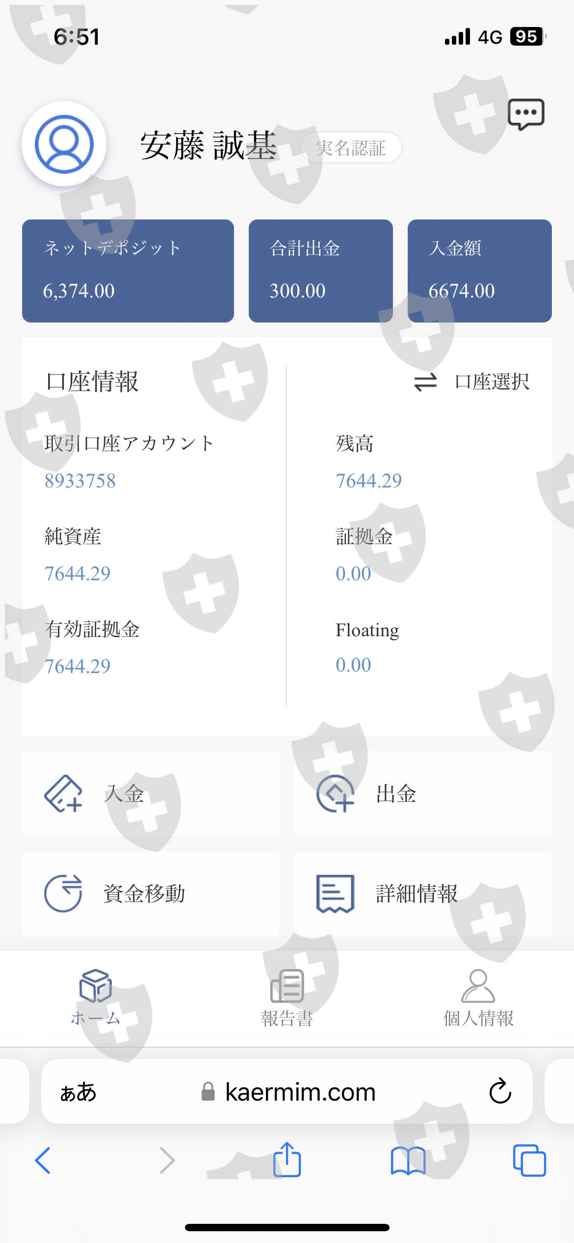 FXは、初めてでしたが利益に惹かれ、山内氏の手引きで口座を開設し、20万円を2回に分けて入金しました。すると、取引の度に数百ドルずつの利益が上がりました。程なくすると、次は杉山義典という大先生と言われる人物が登場しました。そして、杉山氏が直々に指導することになりました。参加を申し出ましたが、神谷氏から、貴方は資金が少な過ぎるのでリスクに耐えられないと言われました。資金を追加するか迷いましたが、一旦見送りました。因みに、周りのメンバーのその時の利益は数万ドルでした。身の丈にあった投資と割り切り追加はしませんでした。利益が1000ドル程になったので、一度300ドルの出金申請したところ確かに口座には149円の為替レートにあった金額が振込まれました。しかし、怖くなり色々と調べてみるとかなりの詐欺が横行していることを知りました。そして、資金を一旦全て出金しようと申請したところ、マネーロンダリングの疑いがあり、出金が停止されたと山内氏から連絡が来ました。解除するためには、後30回の取引を完了させた後2週間経過すれば引出しが出来るようになるとの説明がありました。