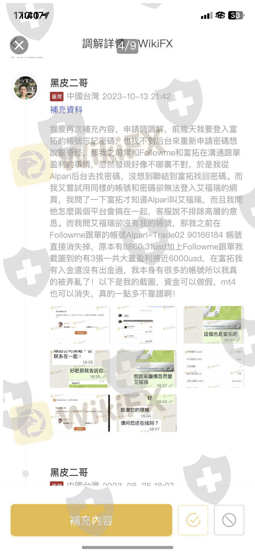 富拓入金跟Followme變成艾福瑞的號,盈利了連本帶利的吃掉了。后台是互通的,這樣怎麼可以呢?