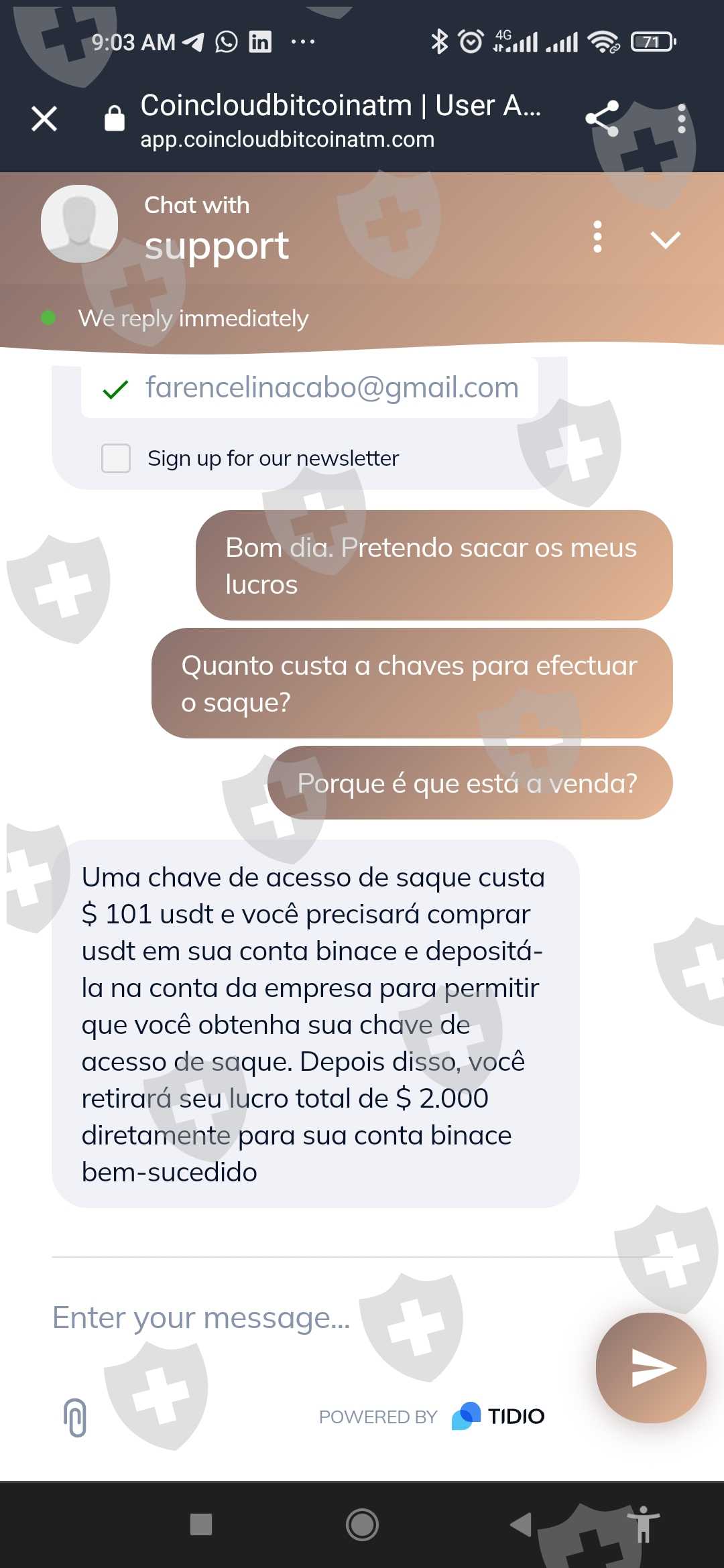 Eles pedem 101 USDT para as chaves, depositei, e o dinheiro ficou pendente e eles disseram que perdi, logo deverias depositar 250 para o saque. Entrei em vários golpes quando estava aprendendo acerca de cryptomoedas. Perdí muito dinheiro até que achei essa plataforma no youtube. Espero recuperar toda perda.
