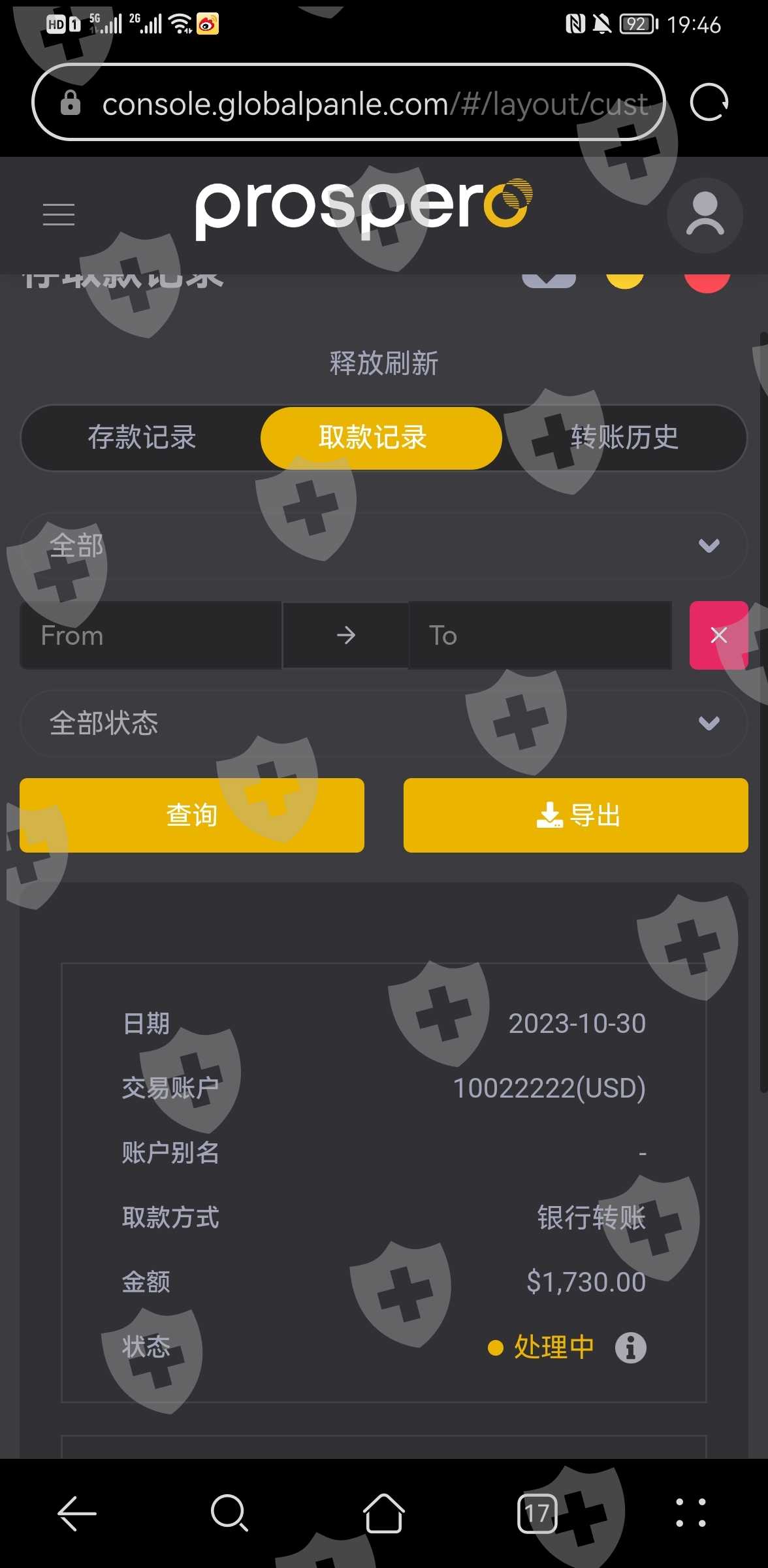 10月30号提取的资金一直没反应