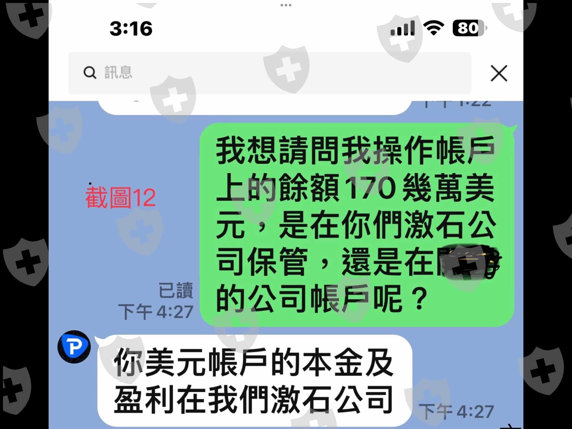 4. 本人的本金及盈利均在激石公司,總計帳上餘額為1702913.69美元,公司竟然說在11月15日以前不提領,系統就會把我的錢抹掉,這麼大的公司是這樣對待客戶?有在保護客戶嗎?依激石的客戶經理說的,激石不是是有英國F C A牌照,即使是英國以外的投資者,也可獲得和英國居民同等的賠償保護嗎?(如截圖12 13 14 16)