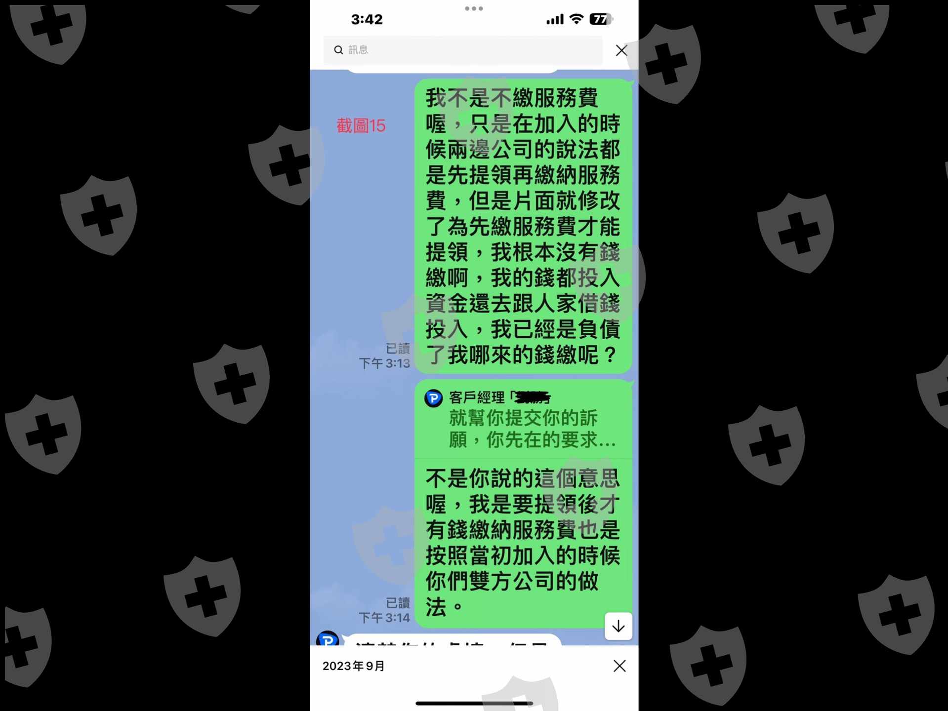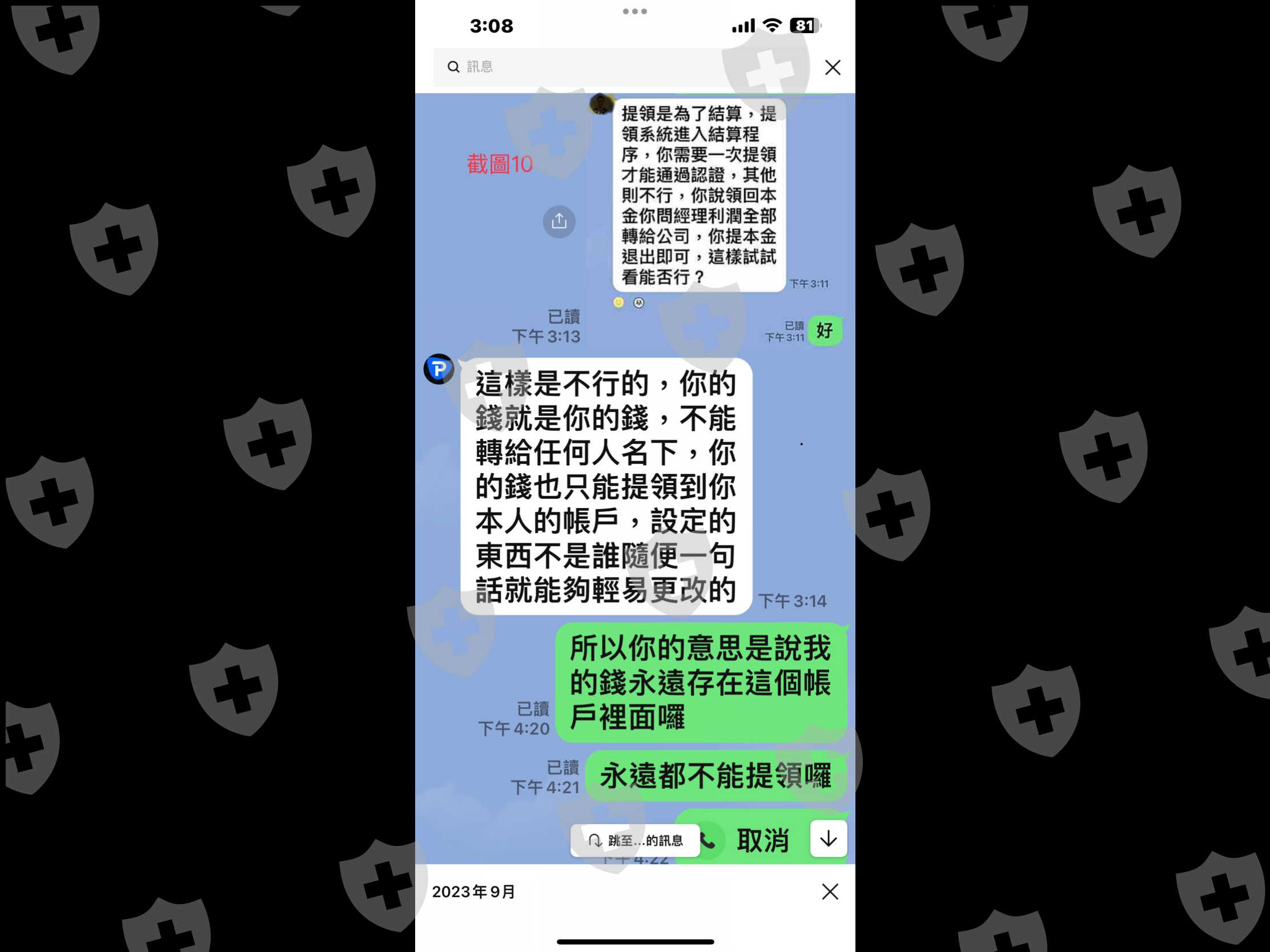 3. 結果10月31日第一次要提領出金,系統就不讓提領,問經理為什麼不能提領,他說因為合作方向他們總部申請提領限制,要我先繳納服務費才能提領,天啊,當初雙方都說提領沒問題,才信任開戶操作,投顧公司也都是提領完才繳納服務費,我們客戶根本不知道他們雙方有什麼約定,二方片面說限制提領就限制提領,客戶完全都不知道也無事先告知,客戶一點權益保障都沒有。我本來就是打算提領出部分餘額,再請公司計算應繳納的服務費,結果雙方公司竟直接修改原先的先提領後再繳納服務費的規定,未事先告知客戶使得客戶在完全不知情的情況下致使無法提領,甚至還限制只能一次提領完畢。(如截圖5 6 7 8 9 10 11 15 )