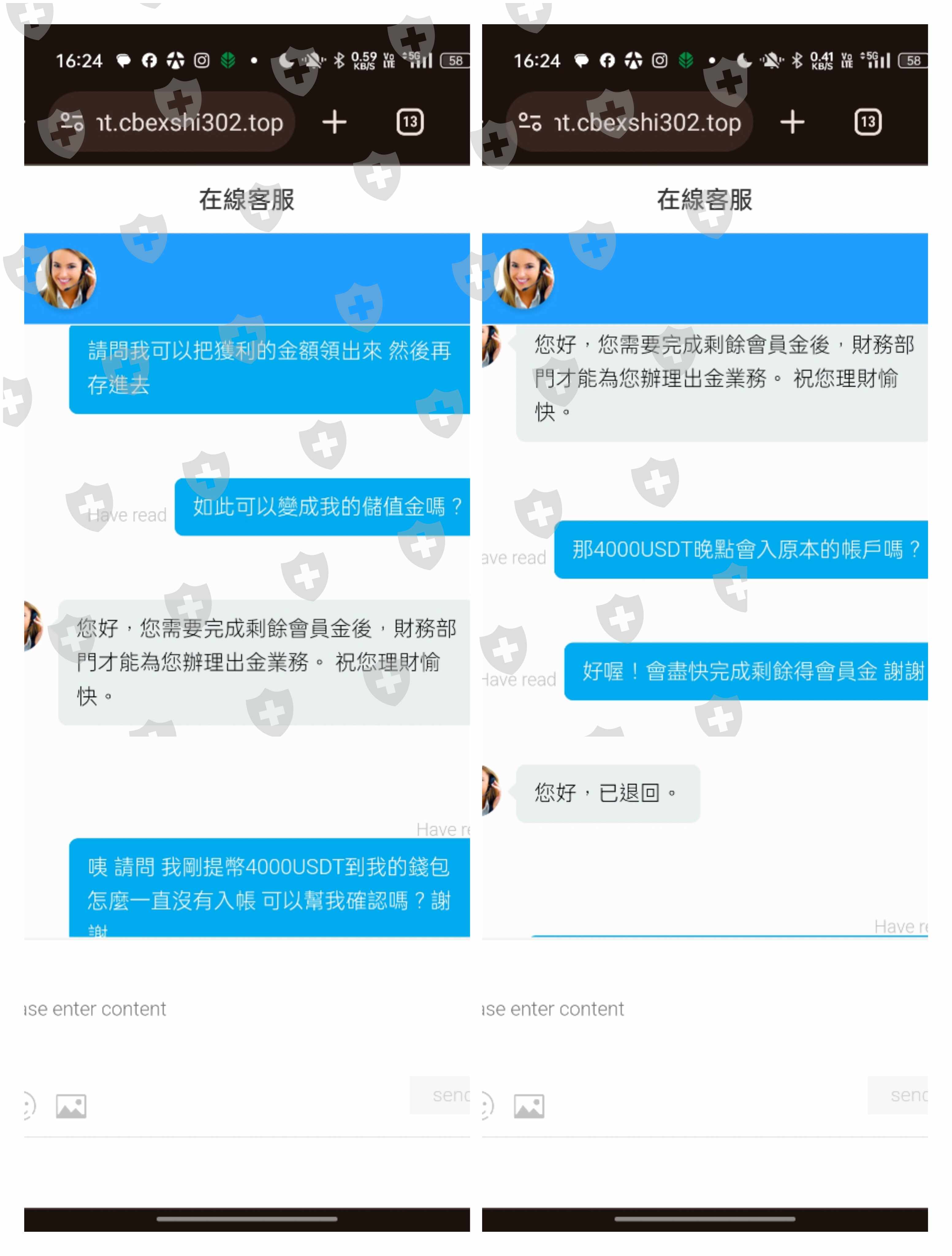 IG假交友,CBEX USDT 真詐騙加入會員儲值金未達58888USDT,凍結出金