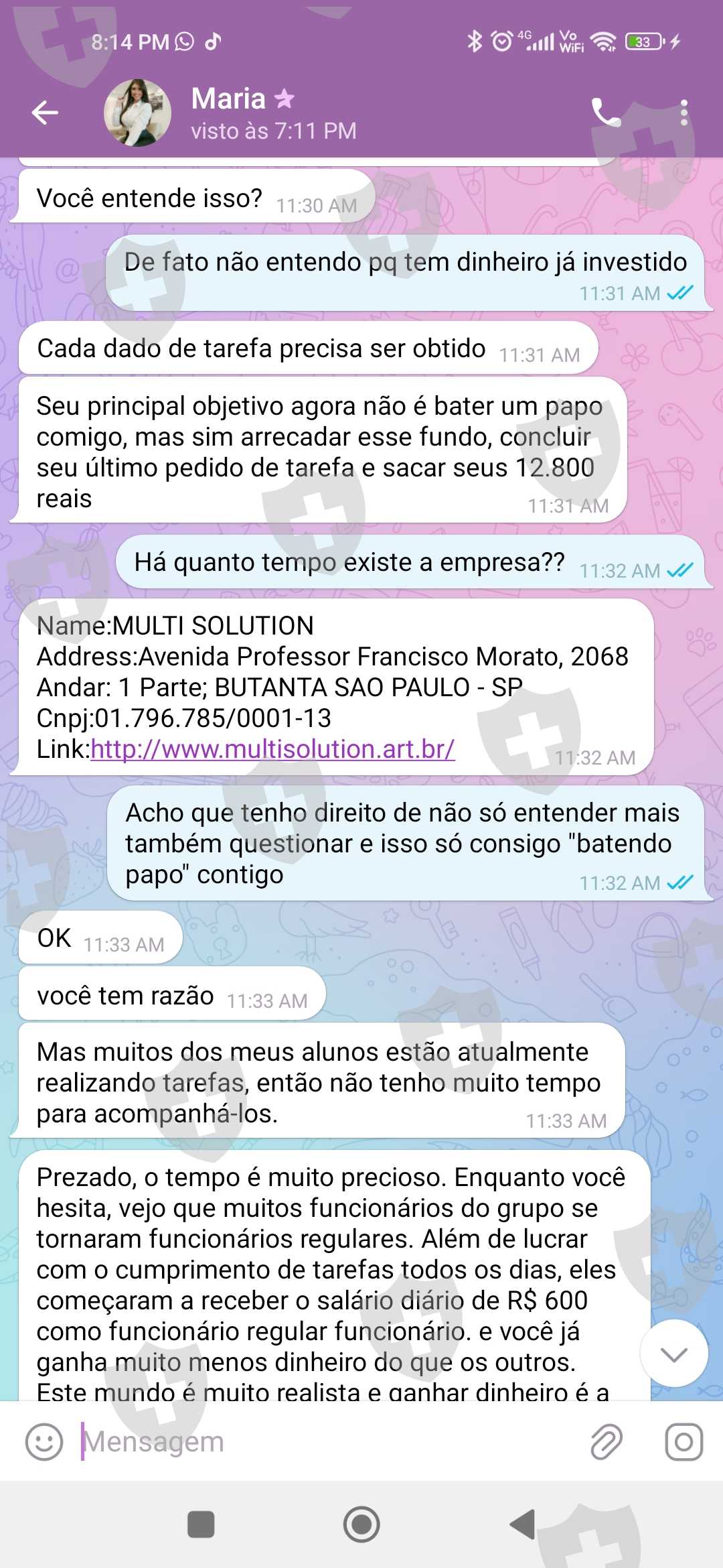 Fraude! Ofertam trabalho homeoffice para realizar as tarefas e a cada tarefa concluída me pediram mais dinheiro e agora estou sem nada! A recepcionista chegou a me orientar que a empresa fazia fotos e filmes que eu poderia participar e arrecadar dinheiro para poder concluir a tarefa e conseguir o saque que sempre tem valores cada vez mais altos e nunca dá certo pedindo sempre mais dinheiro. Quero meu dinheiro de volta