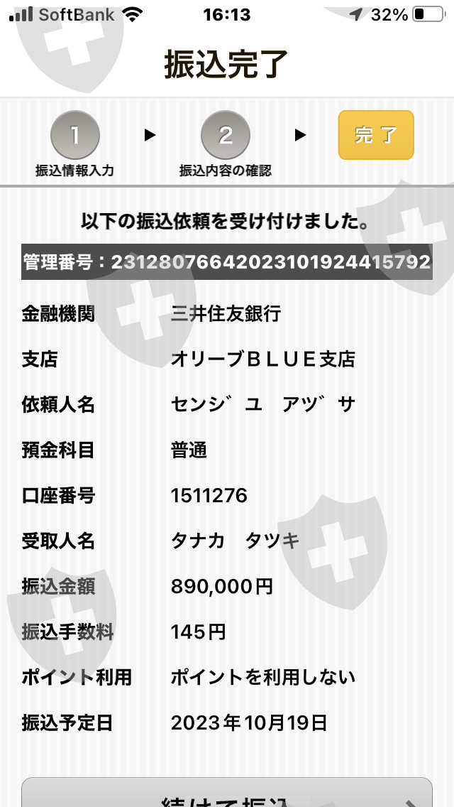 初心者で売り買いのロット0.1を1として買うミスもありましたが決算は成功して利益80ドルを得ました。1ロットを買う場合今の資金では足りないとは言われていましたが次回から注意するようにと言われその後はスムーズにやっていましたが10月11日に指示された決済手続きを間違え損失を出したそうですがそれも無事にできたと言われました。その後いくら利益が出ているのか尋ねると「原油計画に参加できないのは違約金を支払ってないから〜104万円の納付残高を支払い1638ドルの利益を受け取るか、それとも30%の違約金と利益を差し引くことになる」と言われ勝手にクローズした覚えはないと抵抗しましたが結局10月4日の時原油取引について事前決済することはできず納品日を待つ必要があり、それ以外の場合違約金が発生すると言われた時に私が「待ちます」とメールした言葉を盾に結局納品金104万円を払うことになり1638ドルやアカウントに入ってる納付金や利益はお金は全てご自身のものでアカウントにあると言われました。納める金額は「2662.46ドルから1638ドルを引いた1024.46ドル約15万円。つまり104万円➖15万円=89万円を支払いました。