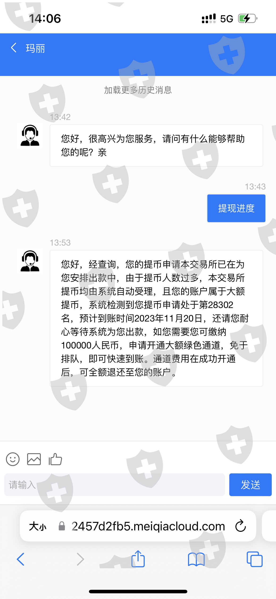 从交易盈利后就开始各种理由限制出金,刚开始是以盈利过高要求交个人所得税,然后又以多房间交易涉嫌洗黑钱冻结账户要求交钱解冻,之后提现时以金额过高时间会延长至2023年11月20日才能到账,之后这个平台就打不开了,联系客服就说因为长时间未操作已被系统自动清零,这个平台就是黑平台,就是来圈钱的,现在连客服也联系不上了
