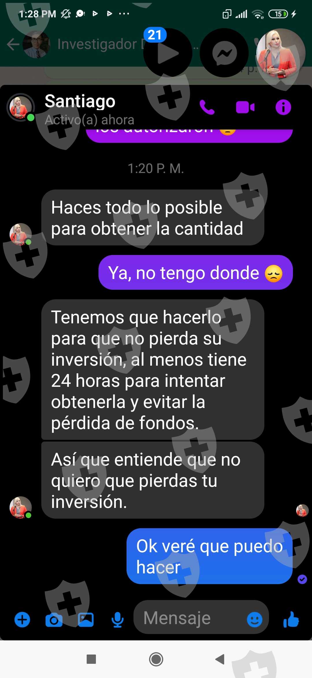 hola buenas tardes soy inexperta en todo esto el caso que la sra Santiago María me está guiando en esta inversión pero ya he mandado varias transferencias y me pide la última para comprar un código me gustaría saber si es real o es un fraude anexo imágenes si alguien me puede apoyar me falta hacerle el último depósito pero la verdad no si es confiable si voy a recuperar lo invertido