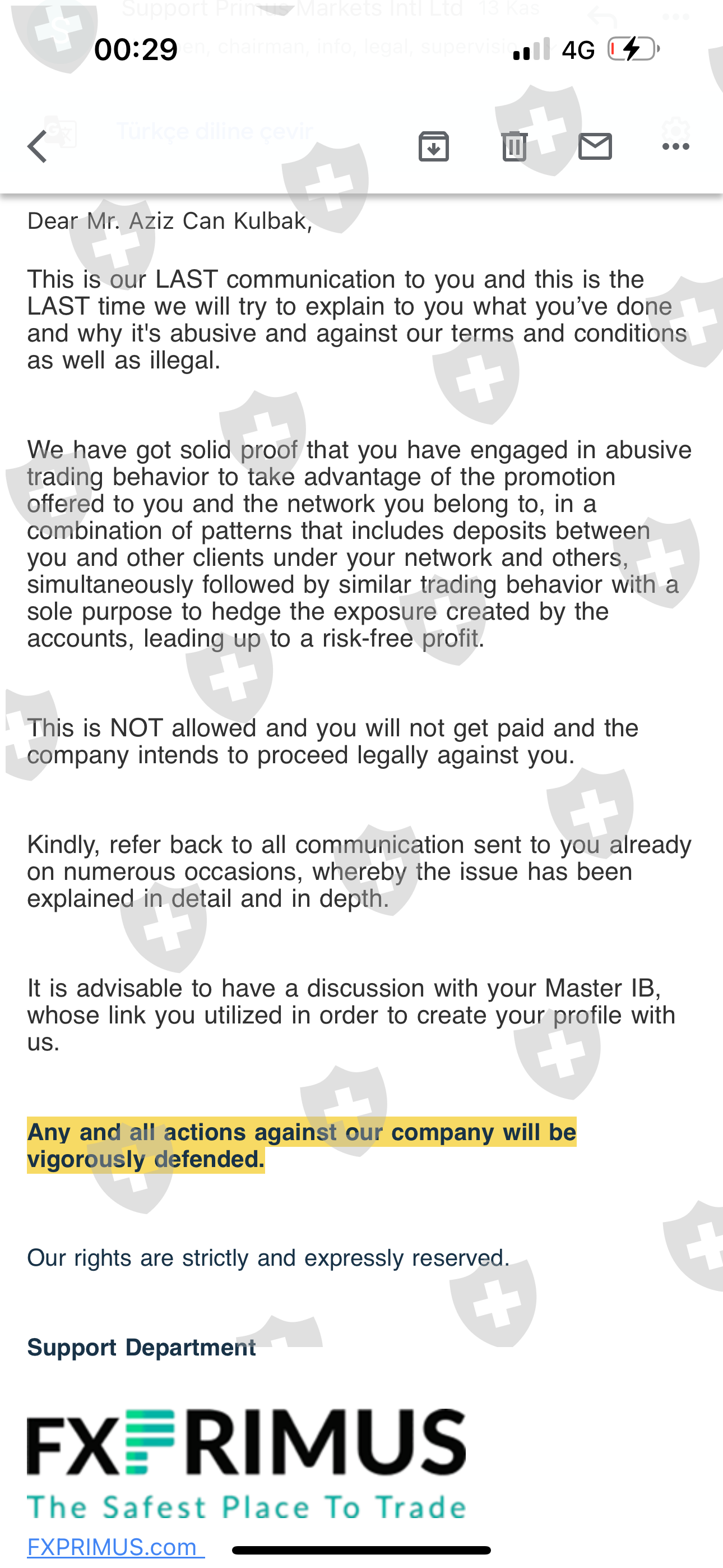 I have made a deposit to fx primus company 2 times And although my account is below the amount I deposited, it does not send my money, I have been scammed very badly, I cannot withdraw my money, The company has cut off communication with me And is not responding, This is a big fraud case, I hear that many investors in Turkey have been scammed by the same method.