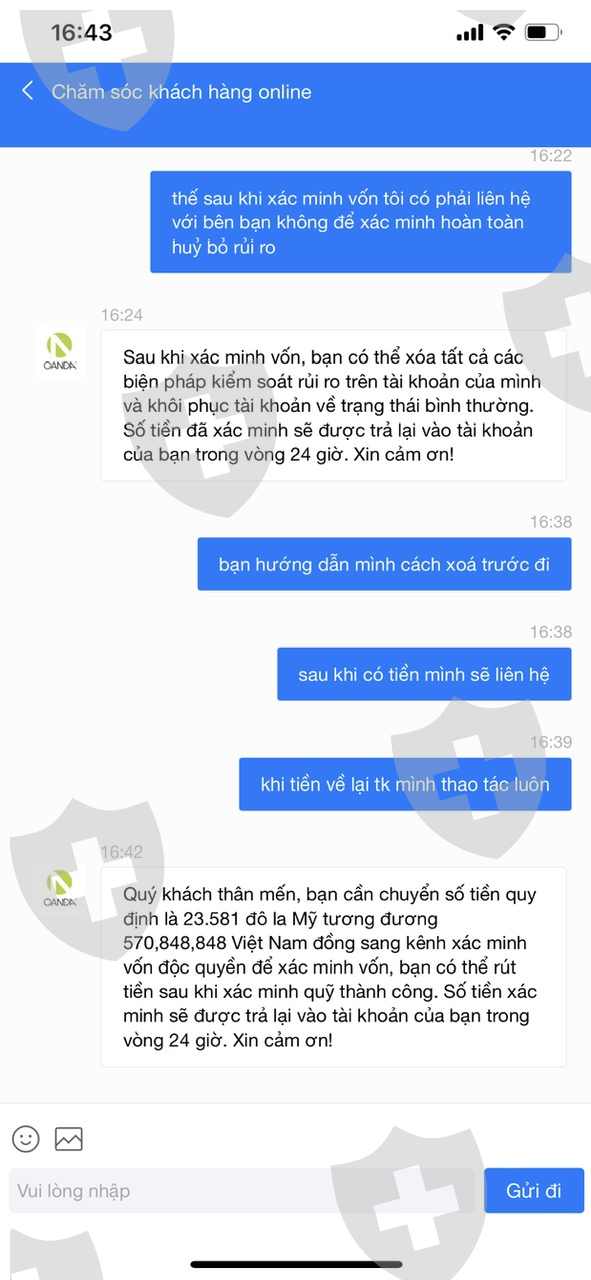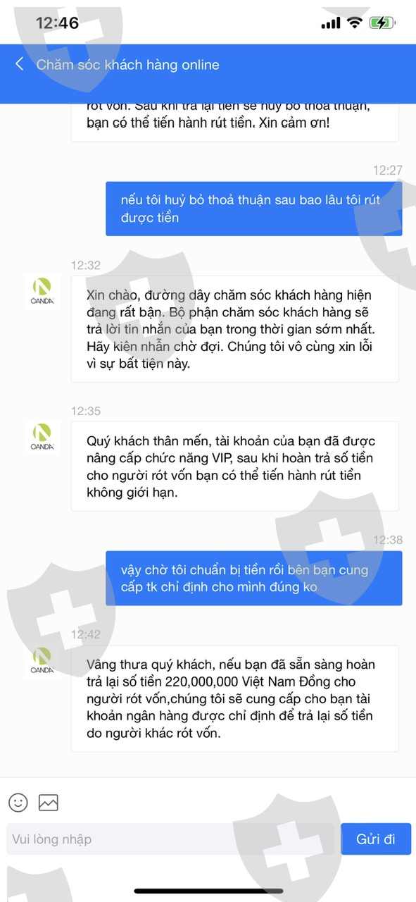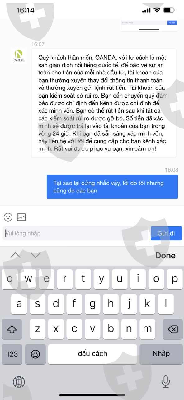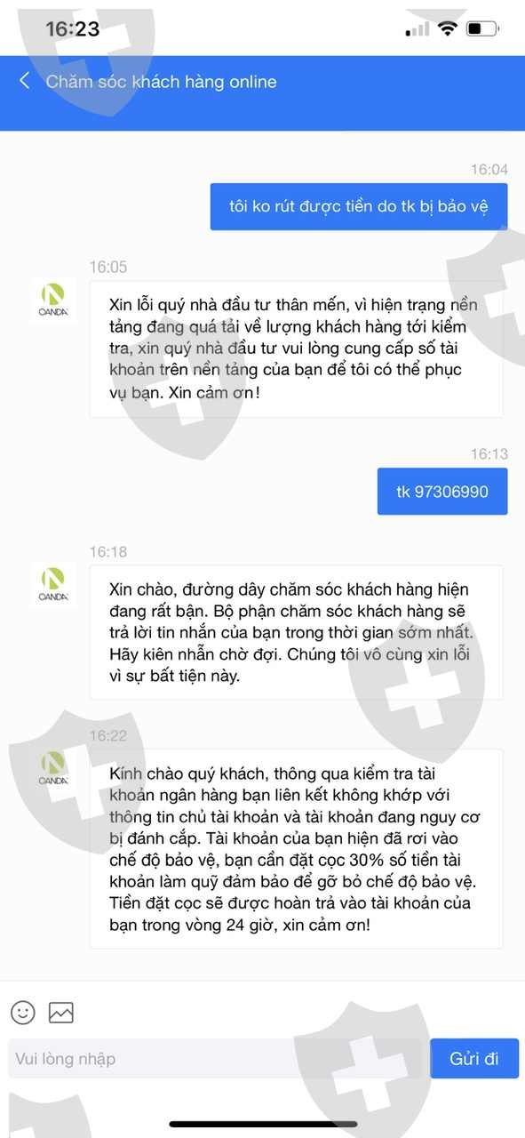 Tôi giao dịch trên sàn odvipversion thông qua môi giới @NguyenBaoHoangfHVKT_1973 trong quá trình giao dịch những lần đầu tiên tôi có rút được tiền với số tiền rất nhỏ, sau đố ngày 24/11/2023 tôi muốn rút tiền thì bộ phận giao dịch không duyệt rút tiền cho tôi mà hướng dẫn liên hệ với chăm sóc khách hàng lấy nền tảng OANDA làm cơ sở hướng dẫn tôi nâng cấp lên TK VIP trong quá trình này nền tảng cung cấp cho tôi một kênh vốn độc quyền của nền tảng chỉ định thông qua số tài khoản cá nhân để nộp tiền nâng tài khoản VIP sau khoảng 2 giờ cố tièn đó đã về tài khoản chứng khoán của tôi, họ hướng dẫn tôi liên kết lại tài khoản của mình , sau đó tôi rút tiền họ báo tôi bị liên kết sai tài khoản , tôi đã kiểm tra đối chiếu thì chúa ơi, tôi cũng không liên tưởng được vì sao lại sai. Tôi đã bình tĩnh chấp nhận xem bên chăm sóc khách hàng sẽ hướng dẫn tôi xử lý thế nào: Họ hướng dẫn tôi nộp 30% số vốn đảm bảo để dỡ bỏ bảo vệ tài khoản tôi chấp nhận nộp theo , sau 24 giờ tiền sẽ về tài khoản của tôi nhưng lần này vẫn là tài khoản cá nhân do bên họ chỉ định, và tôi đã liên kết lại tài khoản của mình nhưng không rút được tiền. Tôi lại tiếp tục liên hệ bộ phận chăm sóc khách hàng họ lại hướng dẫn tôi do tôi vướng vào tài khoản do bên thứ 3 rót vốn lên tôi phải hoàn trả bên thứ 3, tôi chấp nhận trả lại vì điều này có xảy ra. Tôi đã hỏi họ , hỏi bộ phận chăm sóc khách hàng hỏi đi hỏi lại là sau khi tôi hoàn thành tất các các vấn đề này tôi có rút được tiền không. Họ trả lời là vcos vì tôi tôi đã nâng tài khoản lên VIP. Và đến bây giờ tôi vẫn không rút được tiền, họ lấy lý do , do tôi thay đổi tài khoản nhiều lần lên tài khoản của tôi có rủi ro lên không cho rút và bên chăm sóc khách hàng họ hướng dẫn tôi như này: " Quý khách thân mến, OANDA là một sàn giao dịch nổi tiếng quốc tế, bảo vệ sự an toàn vốn của mỗi nhà đầu tư là điều quan trọng nhất, sau khi xác minh , gỡ bỏ tất cả các rủi ro bạn có thể tiến hành rút tiền hình thường và số tiền xác minh sẽ hoàn trả vào tài khoản của bạn trong vốn 24 giờ. Hãy liên hệ với tôi khi bạn sẵn sàng để có thể cung cấp kênh xác minh kịp thời" . Tôi không thể mù quáng làm theo nữa vì tất cả số tiền tôi chuyển cho họ đều là tài khoản cá nhân, tôi không rút được tiền