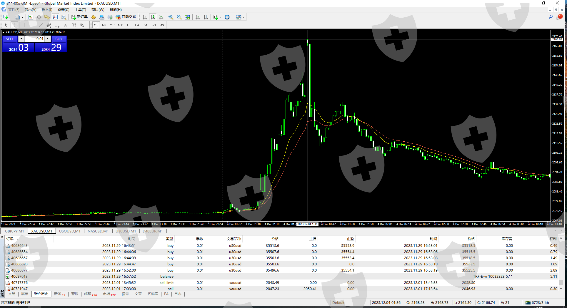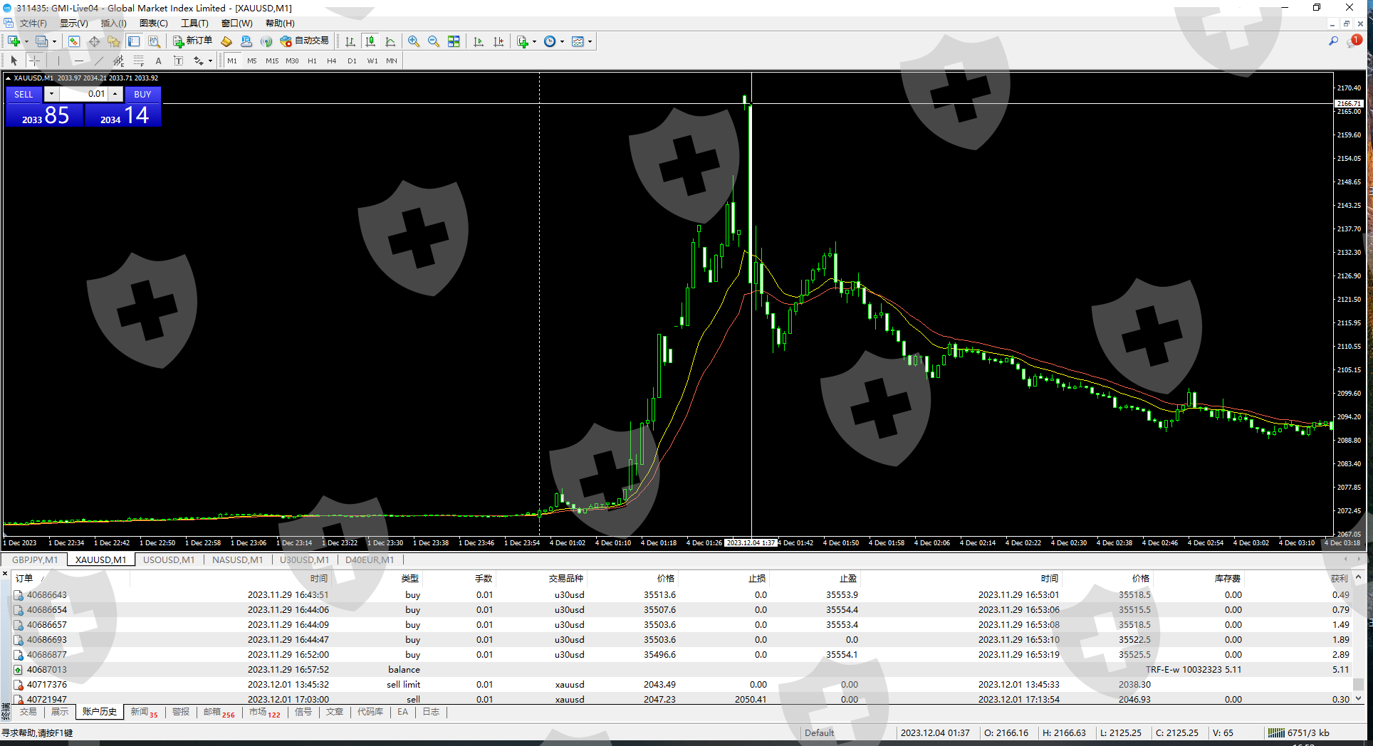 要求GMI提供TICKS在12月4号早盘1点37.01分黄金报价