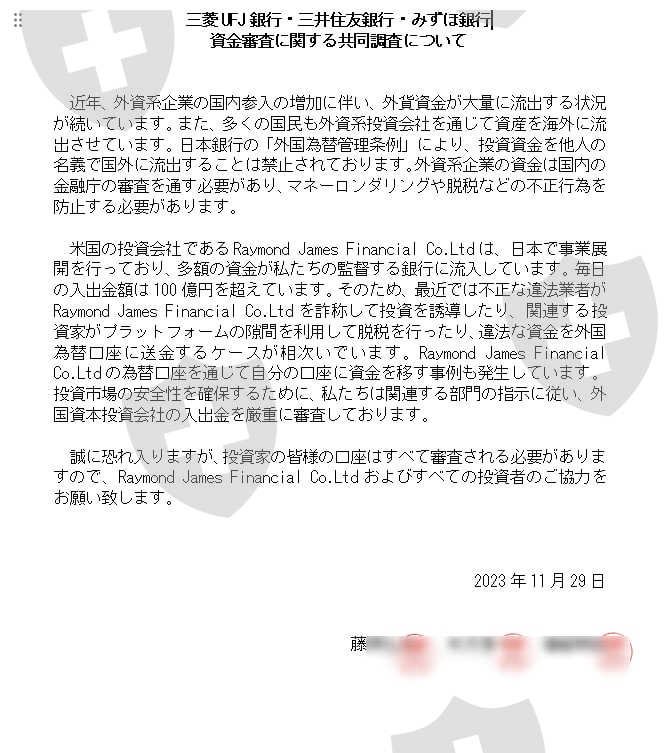 投資情報交流会KoikekunitoshiとRAYMOND JAMESが出金させない