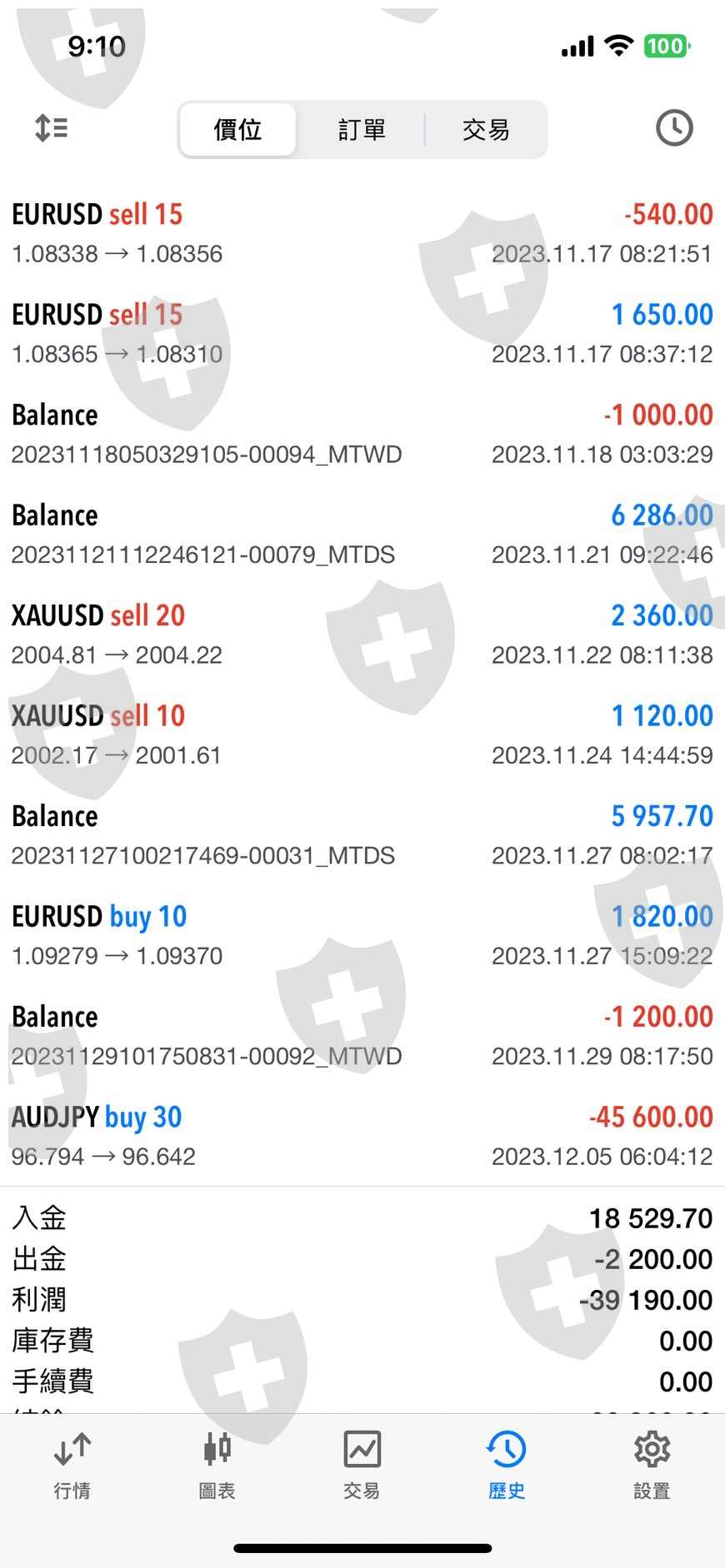 但此筆交易卻不斷往下掉又無法操控