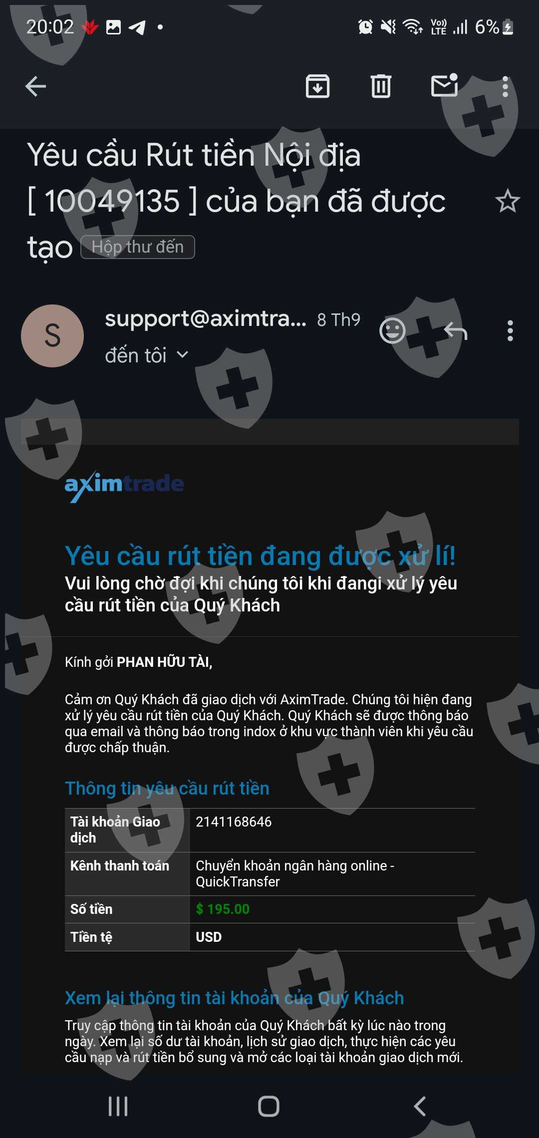 tôi không rút được tiền đã hơn 90 ngày từ sàn aximtrade, nhắn hỏi bộ phận idr thì lệnh rút đang theo dõi này là do cổng thanh toán, cổng gì mà hơn 3 tháng chưa nhận được tiền