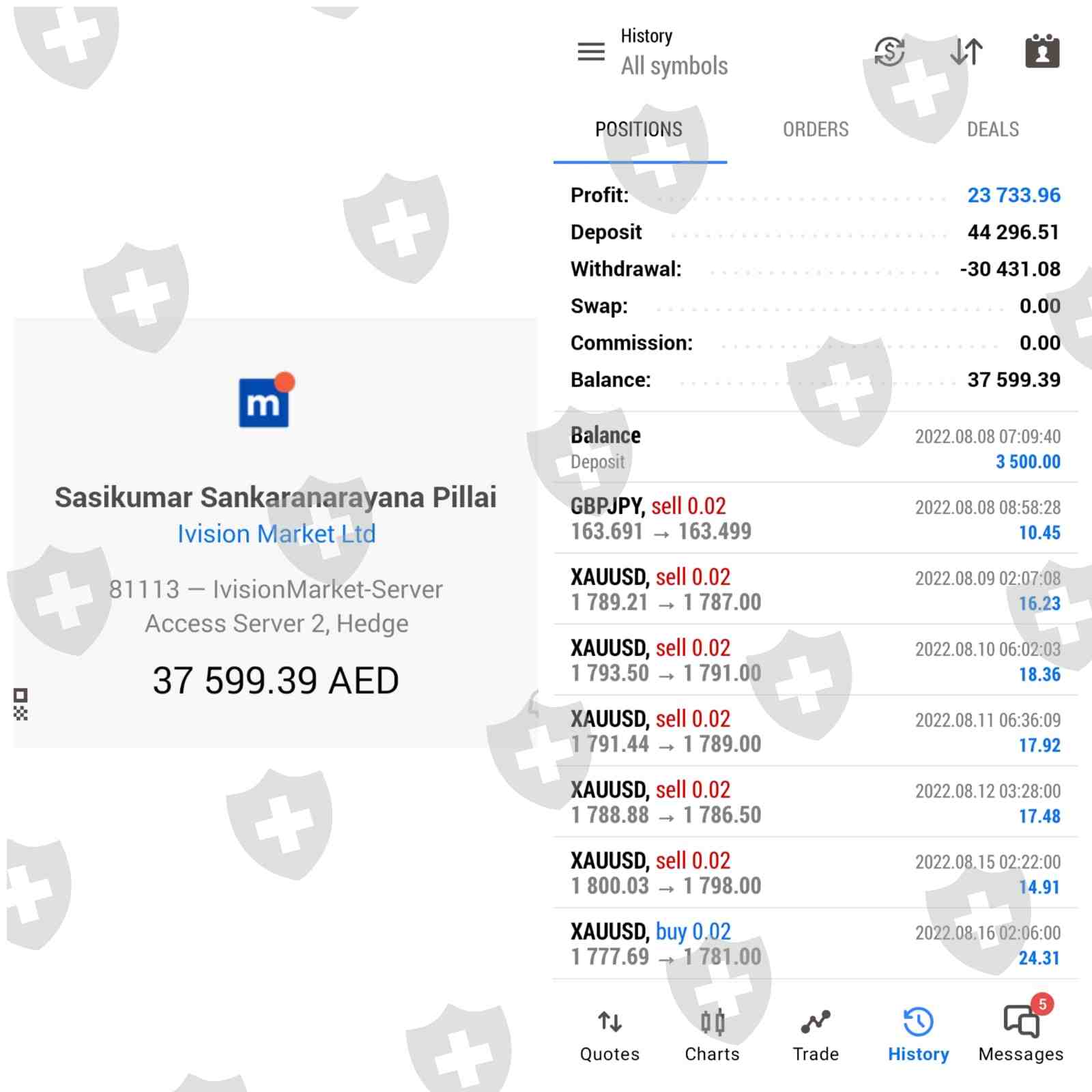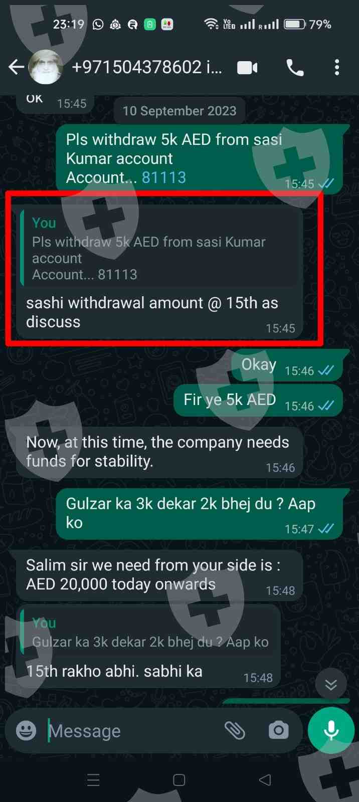 我在22年8月8日开户,在开始交易后,我一直把赚来的利润放进本金里,在与交易商沟通之后,我又加了30,000 迪拉姆,为期3个月。当我想要出金这30,000迪拉姆的时候,经纪人(萨梅尔·汗,真实姓名是韦埃尔·艾哈迈德)开始拖延时间,一天又一天,一直没出金。现在他不放出我的本金和利润金额,从11月3日以来,我的账户一直没更新,我多次尝试联系经纪人,但他一直不回复。现在唯一的方式就是曝光他们,有很多人跟我面临的是一样的问题。