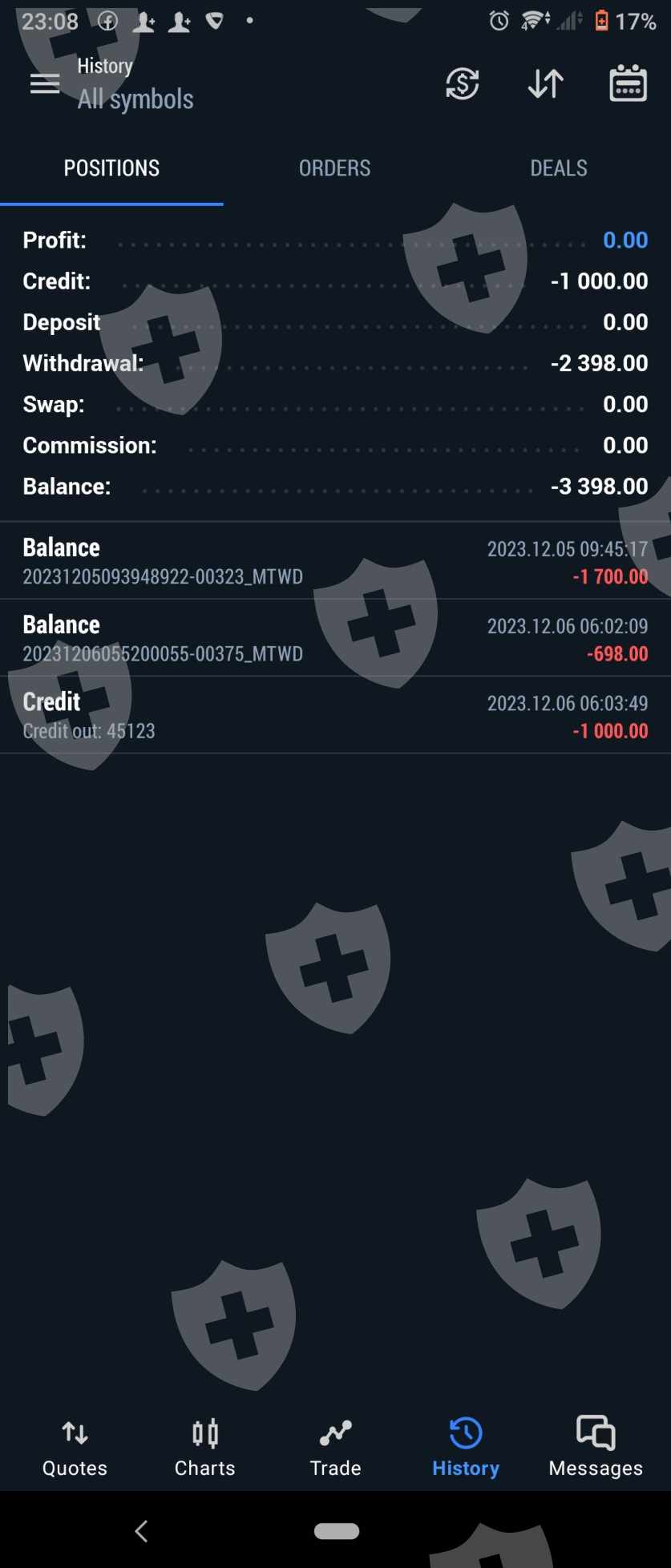 前三四次出金,我申请之后就能出金。但这次,交易商一直推迟出金,已经好几周了,出金申请还是待处理,一直没被通过。我有5000存款,前两次出金1700USD+689USD,都收到了。现在我的交易订单也看不了,这肯定是诈骗交易商。