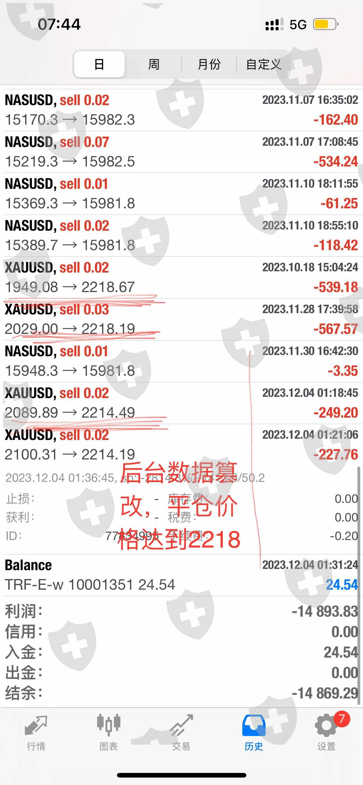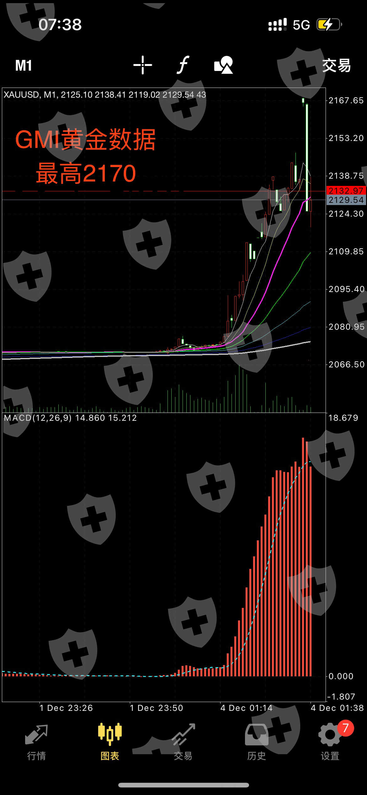 2023年12月4日,国际黄金冲高之2145附近,然而GMI平台的黄金数据达到2170,导致众多黄金空单投资者全线爆仓,最可恨是黄金的平仓价达到2218,经过对比,市面上所有的平台黄金数据都在2145附近,这种明显后台恶意篡改数据的手法让人感到悲哀。
