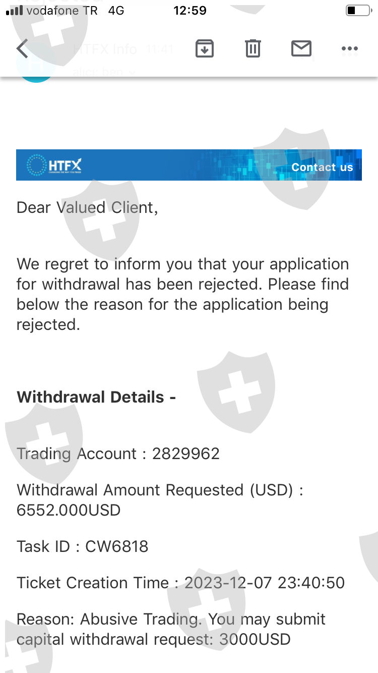 on 04.12.2023 I deposited USD 1000 to HTFX forex company, Then my account sank by buying Gold, then on 06.11.2023 I deposited USD 3000 into my account and I made a buy ( buy) again and made a profit, I spent a lot of effort. But I saw that the company wiped out my profits and transferred my main money back to my meta trader account. Please help me