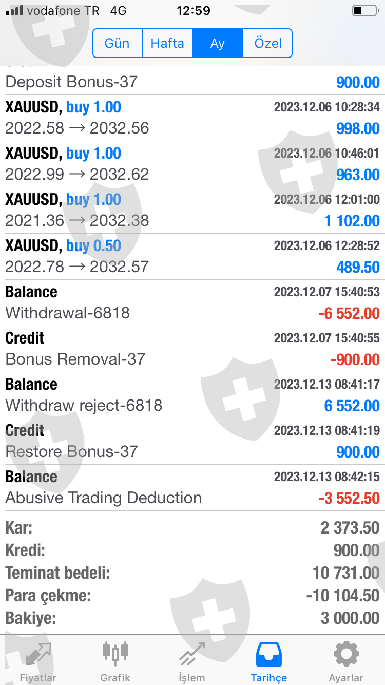 2023年12月4日,我在HTFX公司入金1000美元,然后因购买黄金,亏损,导致我账户余额下降。然后2023年11月6日,我又存入3000美元到账户,我再次买入并盈利,我为此付出了很多努力。 但是该公司抹去了我的利润,并将主要资金转回我的MT交易账户。 请帮帮我