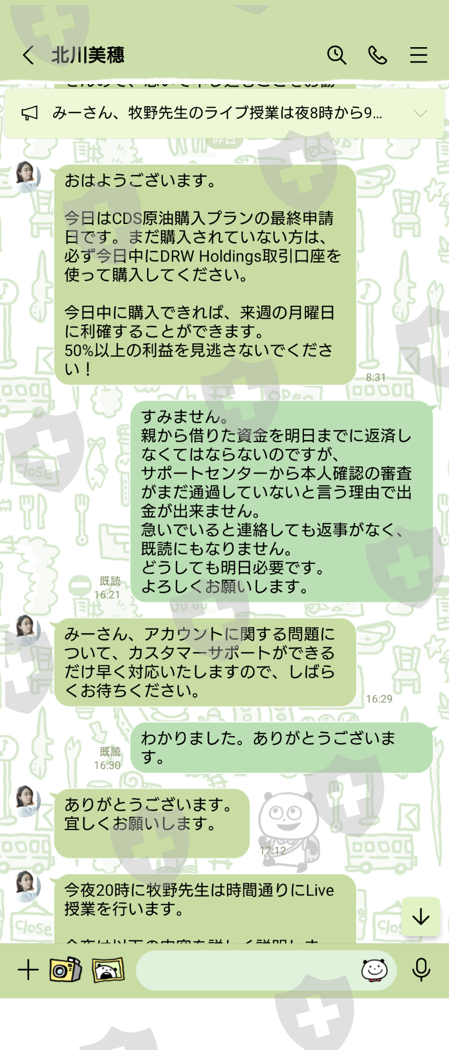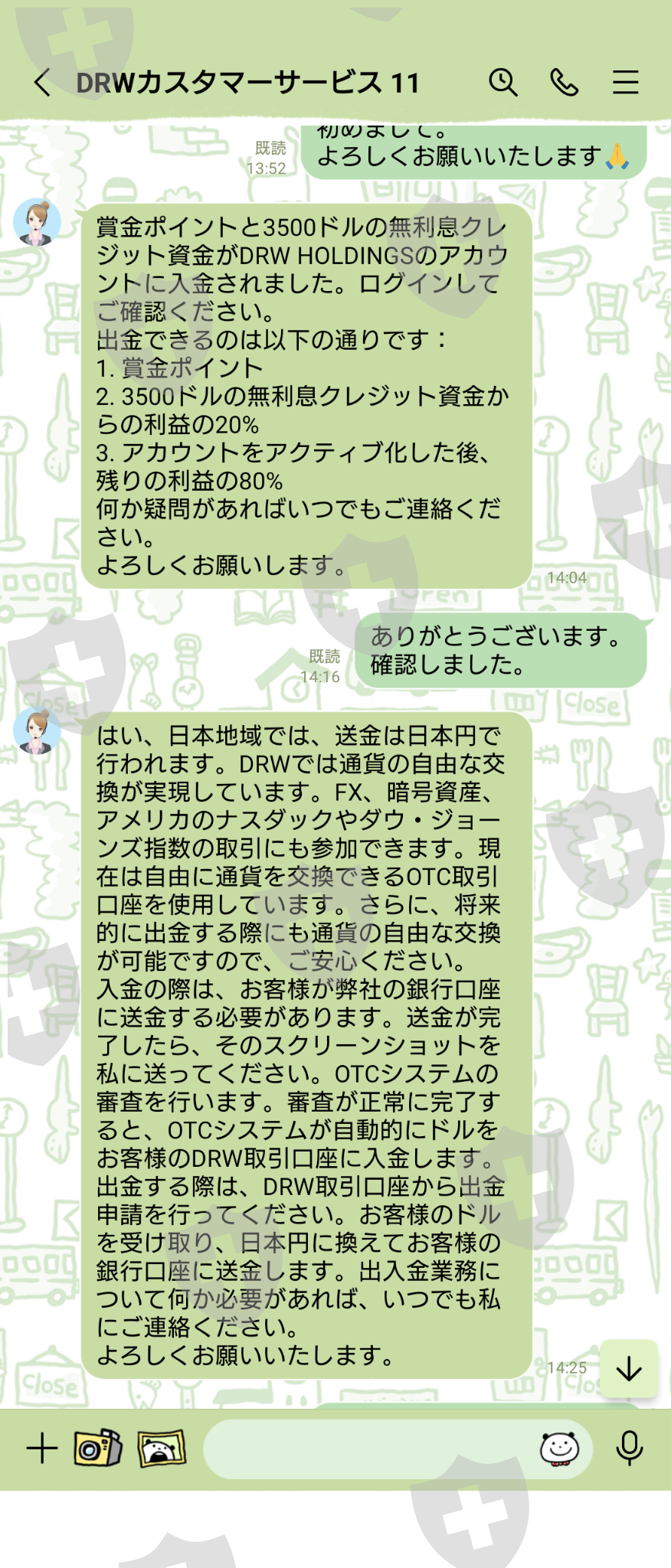所有通讯均通过 LINE 进行。第一笔贷款是免费的$3,500,如果你赚了一半的利润,那$3,500就会收回来。您可以提取 20% 的利润,但除非您输入 3,500 美元,否则您无法进行交易。我向父母借了钱,进去了。我赚了一点小钱,所以我申请提现6100美元,但客服告诉我身份验证有问题,所以我给他们发了一张驾照的照片。有人告诉我,如果通过审查就可以提款,但我没有收到他们的消息,所以当我询问时,我被LINE屏蔽了。助理也被屏蔽了。 LINE群组也被删除,无法联系。我希望立即退款 6,100 美元。
