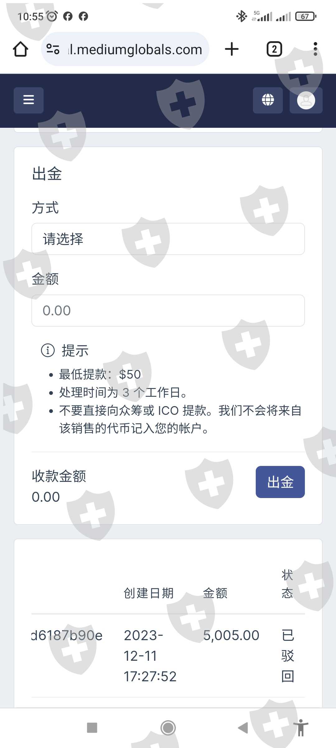 第一次出金1550平台已扣款显示转账成功,但没有收到金,第二次出金5005平台驳回出款要求。再次申请出款,平台就关闭了我的账号。垃圾平台,大家避坑。