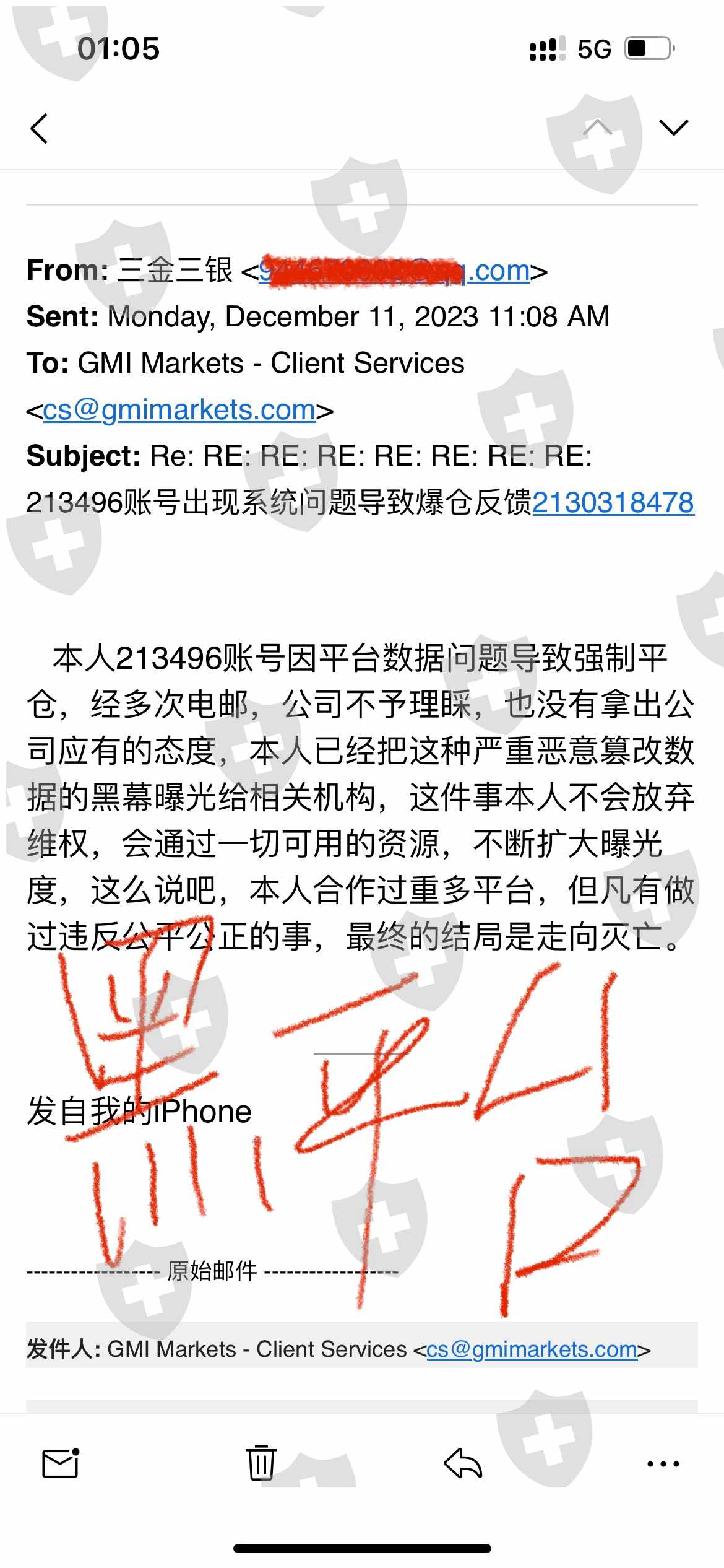 这次由于GMI公司恶意篡改数据到账本人账号穿仓-1500美元,然后经过多次电邮交涉,平台不理不睬,只把穿仓部分补齐,严重确实公平,公正,诚信为本的契约精神。种种迹象表明,GMI平台不再维护自身信誉,公司也到了穷途末路之际,会有重大隐患