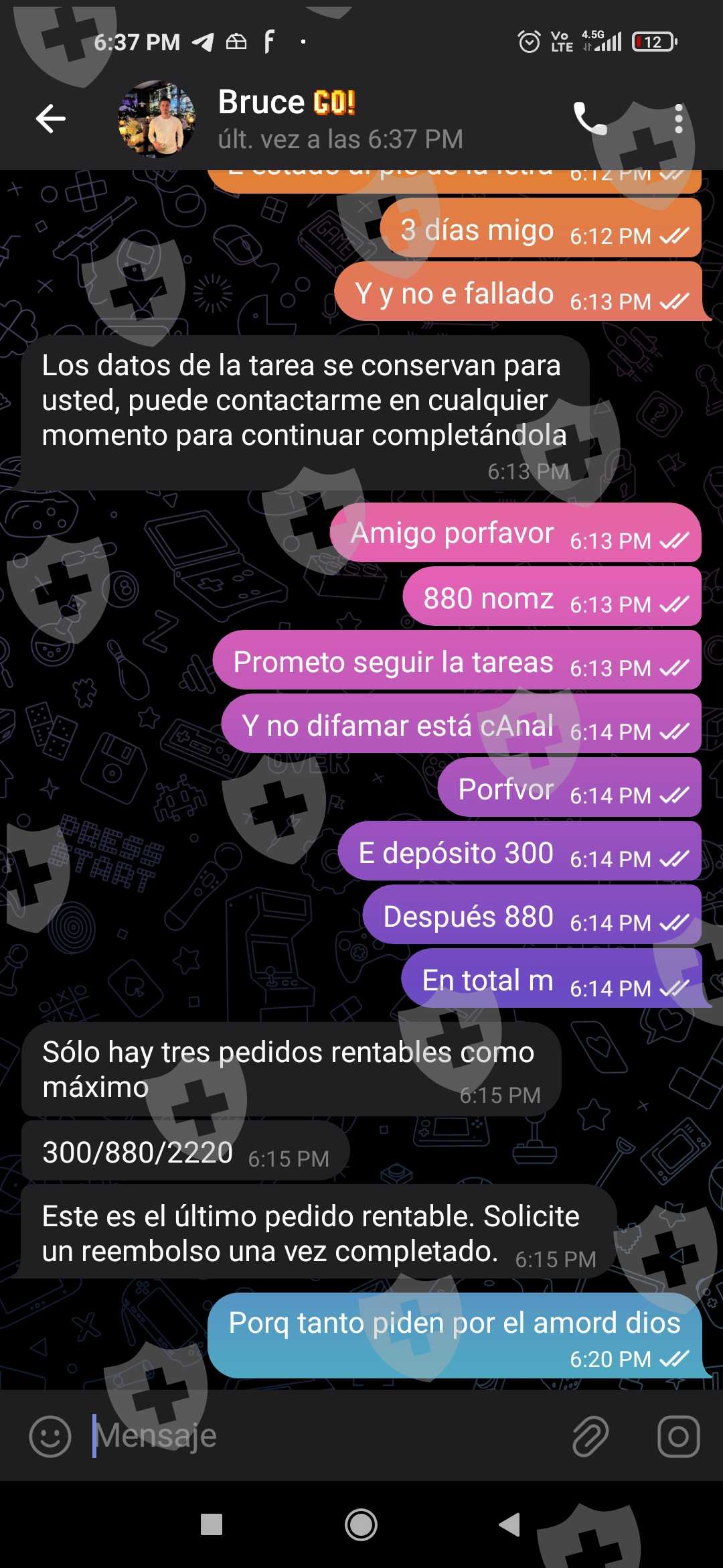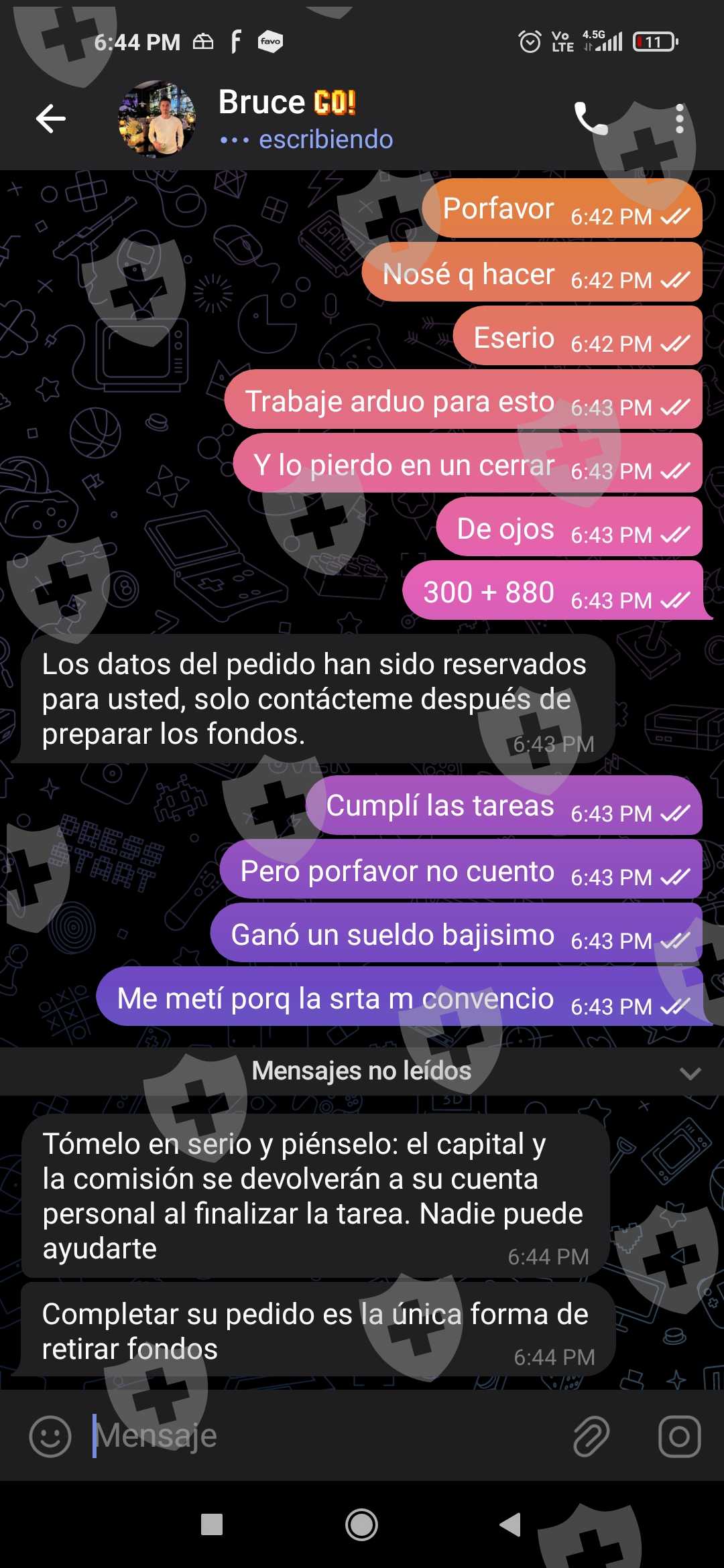 早上好,我被这个页面骗了。 Goldman Sachs因为他们做的任务是为了换取金钱,所以你做的任务越多。你存入硬通货的级别 通过了他们告诉我存入 300 索尔的级别,你的佣金将是 90+ 我存入了存款,我必须完成另一项任务,他们说存入 880 索尔,它会加倍,不是这样,因为我不想再继续了,我想离开,因为我没钱了,他们不想还给我,他们把我踢出了小组,最重要的是,他们让我存下另一个任务2220 索尔,我打算退回所有东西...帮助我,我只需要我的钱投资 880+ 300 索尔