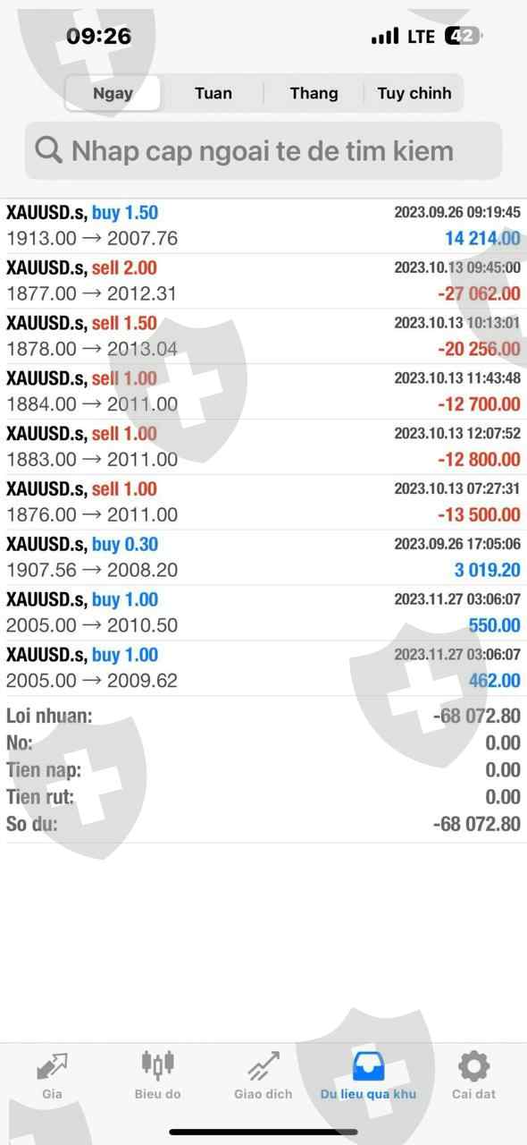 tôi được 1 bạn ib của sàn hỗ trợ giao dịch. tôi nạp vào 100k USD sau khi giao dịch thì theo lệnh ib bắn lỗ 32k usd và còn 68k usd sau đó ib đánh luôn của tôi lệnh vàng Sell đáy BUY đỉnh. lúc đó tk tôi còn 9k tôi muốn rút ra nhưng ib k đồng ý cho tôi rút ra và cháy luôn tk của tôi. khuyến cáo mn k nên chơi nhé, và 1 người bạn của mình củng mất 12k ở sàn này rồi