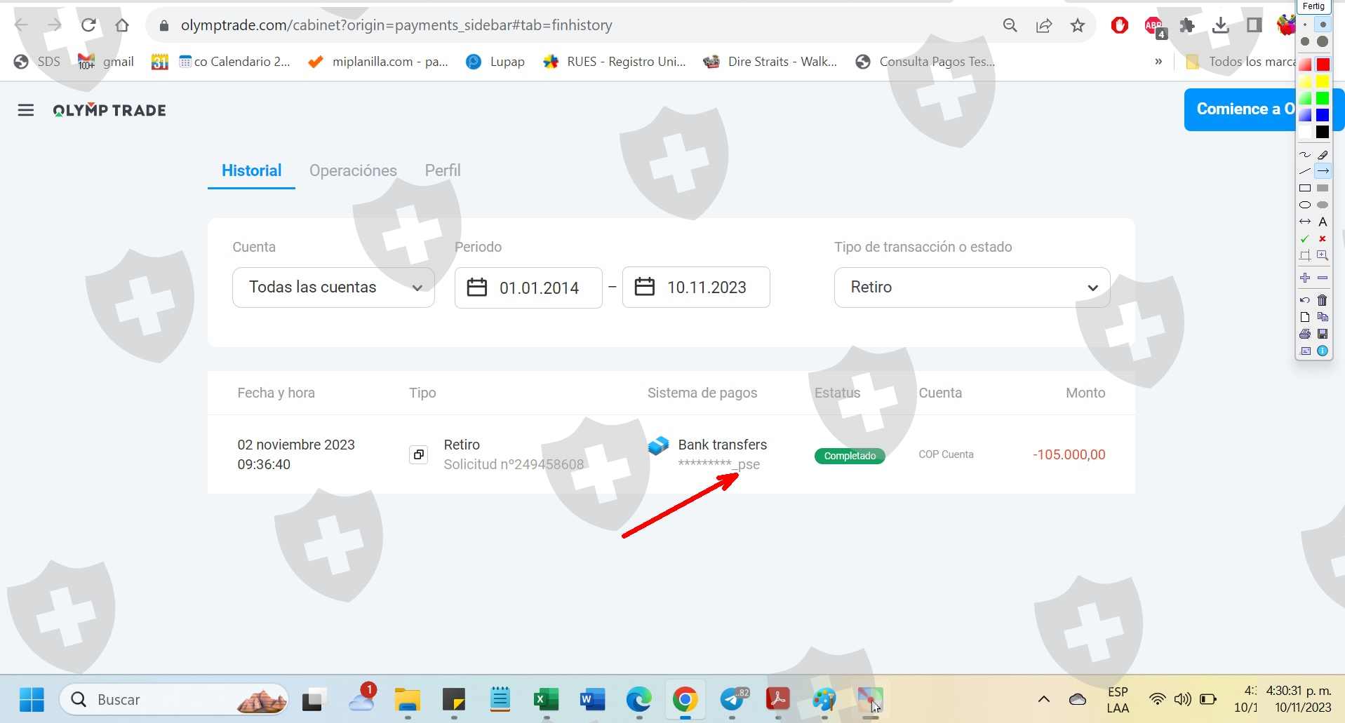 realice retiro del broker Olymp Trade, con la sorpresa que este no acredito los