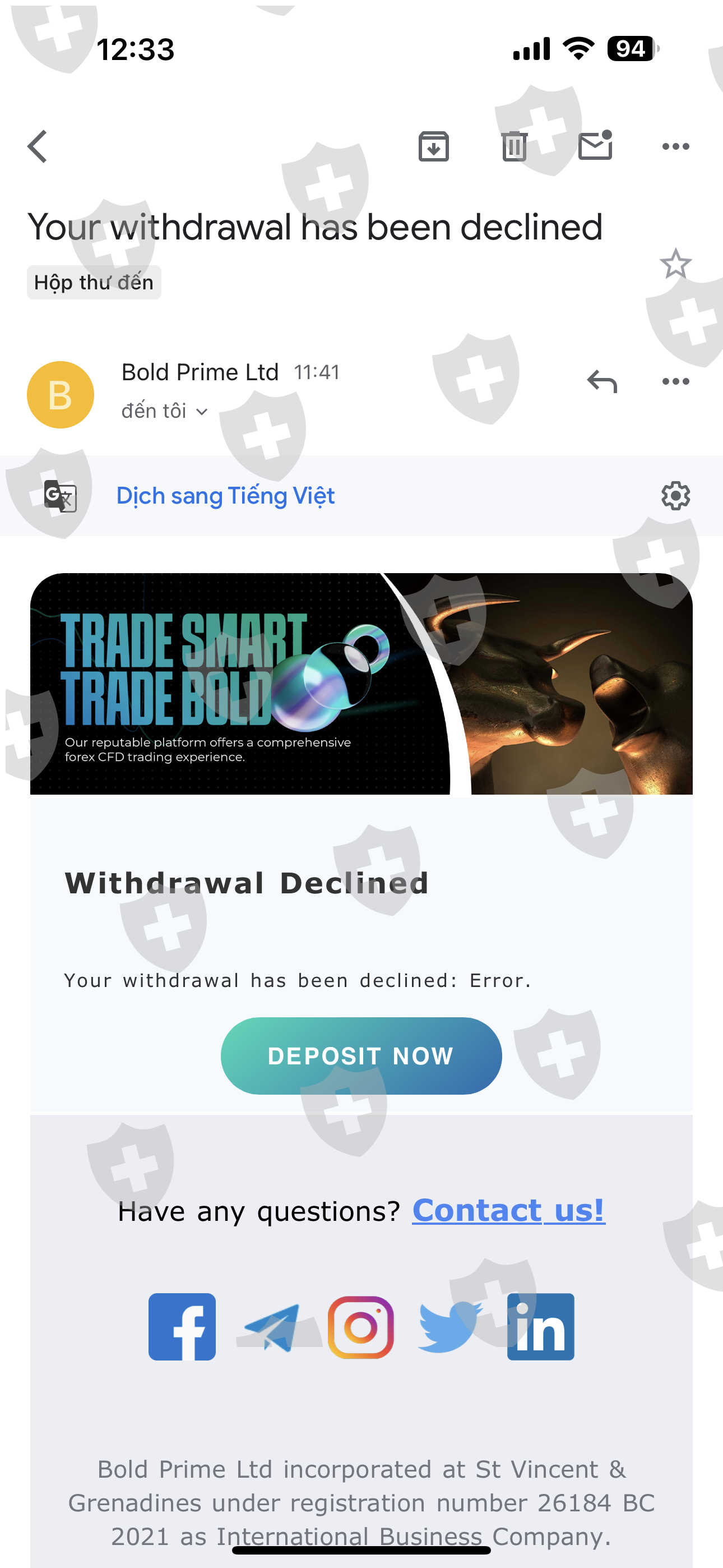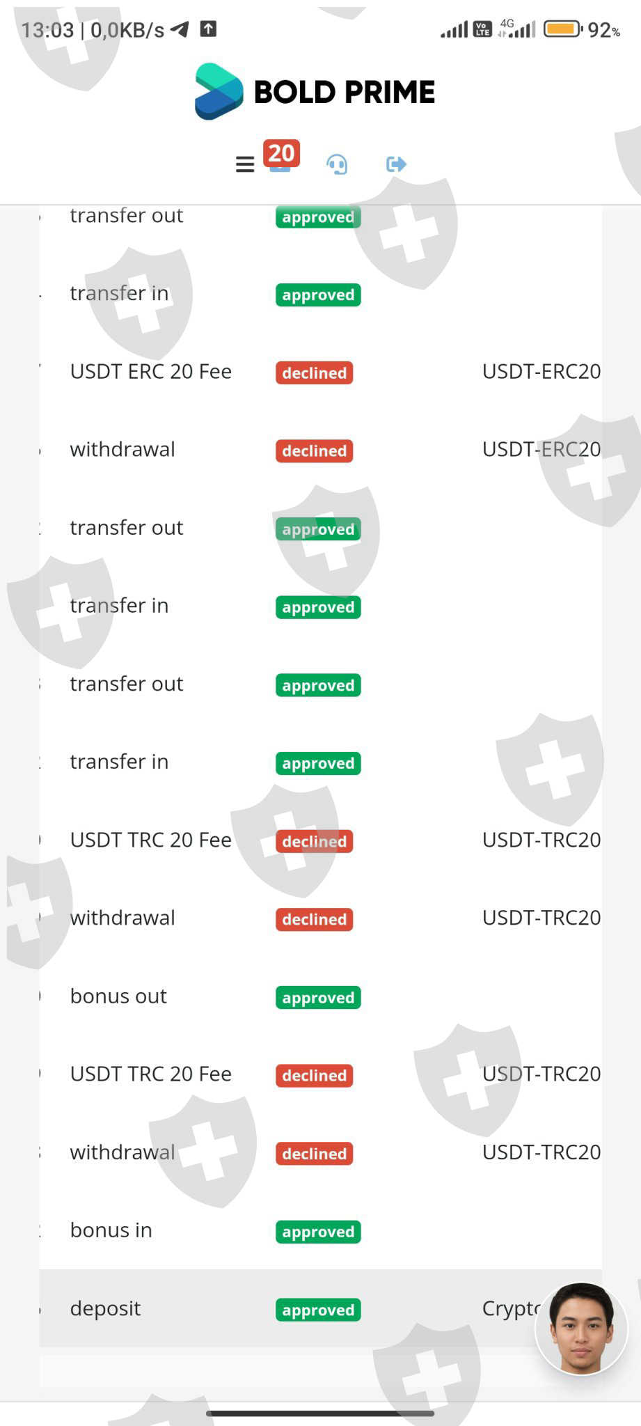 每次出金都要等很长时间。 我每两周出一次,但都会被拒绝。 Bold Prime 骗了我,也不给我出金。