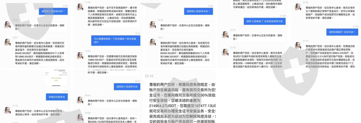 在聊天過程中愈覺相談盛歡,博取信仁之後談及工作, 說是做it相關工作的,要求投資Usdt 幫助讓自能更輕鬆不要工作辛苦勞累,ㄧ開始不想彼此涉及金錢,但被說不信任跟軟磨硬泡輕言細語要求ㄧ起投資努力,希望未來能更輕鬆,就陸續投資,第一次,第二次 因投資小額,故可以順利出金,之後金額變大了6萬多 即無法出金。要求要繳稅,有詢問直接扣除稅額,客服說不行,詢問網友也說要繳還質問到底要不處理(因網友也有投一半錢)在半壓迫下籌借錢繳完稅 客服又不給提幣要求要繳安全校驗金,更多了⋯ 問網友又說必要繳的,說每個地方規定不同,而且是要本人賬戶繳,不得代繳,在被又壓迫的籌借更多繳校驗金,繳完要提幣,客服再次不給提幣(出金),說是賬戶有被盜風險 須安裝賬戶安全校驗進行安全校驗風險金更多了,我拿不出錢繳10萬左右的Usdt,網友也說拿不出,還要我拿出處理態度,之後就沒連繫了,我⋯⋯⋯⋯被詐騙,報警處理了,希望能有貴人能幫幫我,謝謝。