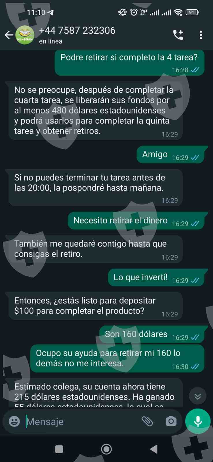 Me hcieron depositar 275 dolares y ahora no me dejan retirar los fondos de las comisiones, ni nada sin que complete tareas pero para esto me quiere seguir haciendo pagar más dinero y yo no quiero porque no tengo y es dinero de mis estudios y necesito la devolucion. Ahi les dejo el numero y pagina en la captura sale que me hcieron depositar $160 peron despues me hcieron depositar mas dinero, por favor necesito que me ayuden.