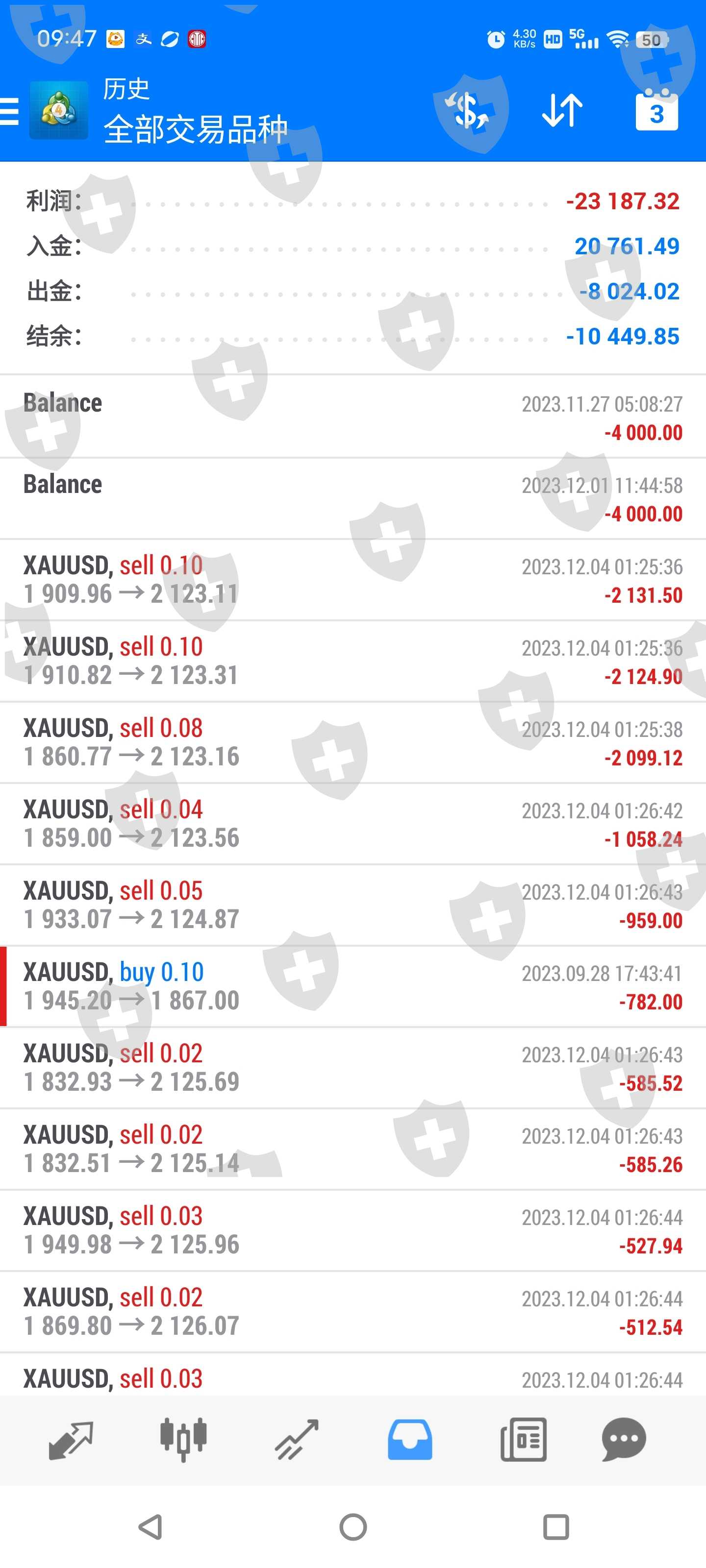 突然,在镜像交易账户中鲁莽地投入了大手数,导致立即全盘亏损。