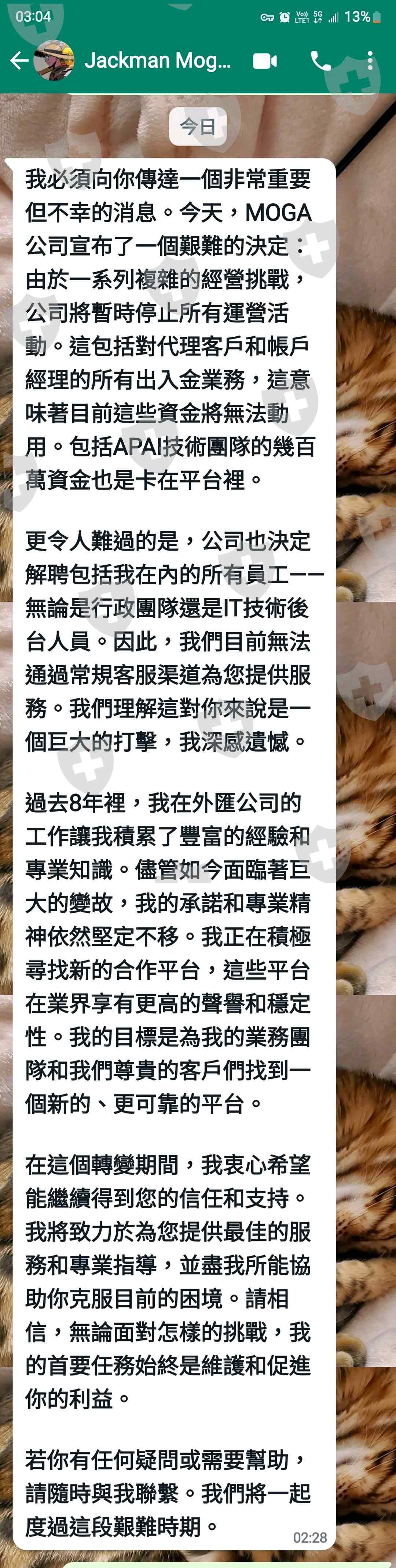 無法出金,平台沒有cs回覆,平時跟我的cs 說公司要倒了,他們都給資遣了,解散了