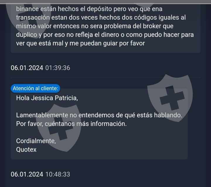 Buen día realice un deposito de 700 USD en mi broker pero no me refleja me comunique con soporte de quotex y se hacen los que no entienden de que les estoy escribiendo envíe el bauche del deposito y me bloquearon mi cuenta de quotex logre después de tanto desbloquearlo pero no recupero mi inversión no me dan ninguna solución.