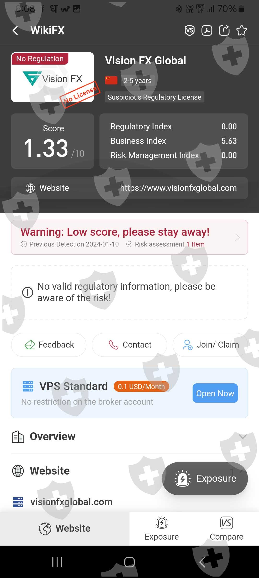 我在Vision FX Global交易商账户中存入了 100 美元,用于在 Meta5进行交易,在一个不认识的人的提议下,我的交易商账户中存入了 200 美元,他告诉我在进行了一些交易后,我赚了 300 美元,但最主要的是,我问他如何出金,以便我了解交易过程,他告诉我交易手数为 1000 手,至少要进行 20 笔交易,需要存入 1000 美元,然后我发现事情不对,之后我的钱就被卡住了,无法出金,在发送了这么多邮件和投诉之后,什么也没有得到,该交易商也不在名单中。