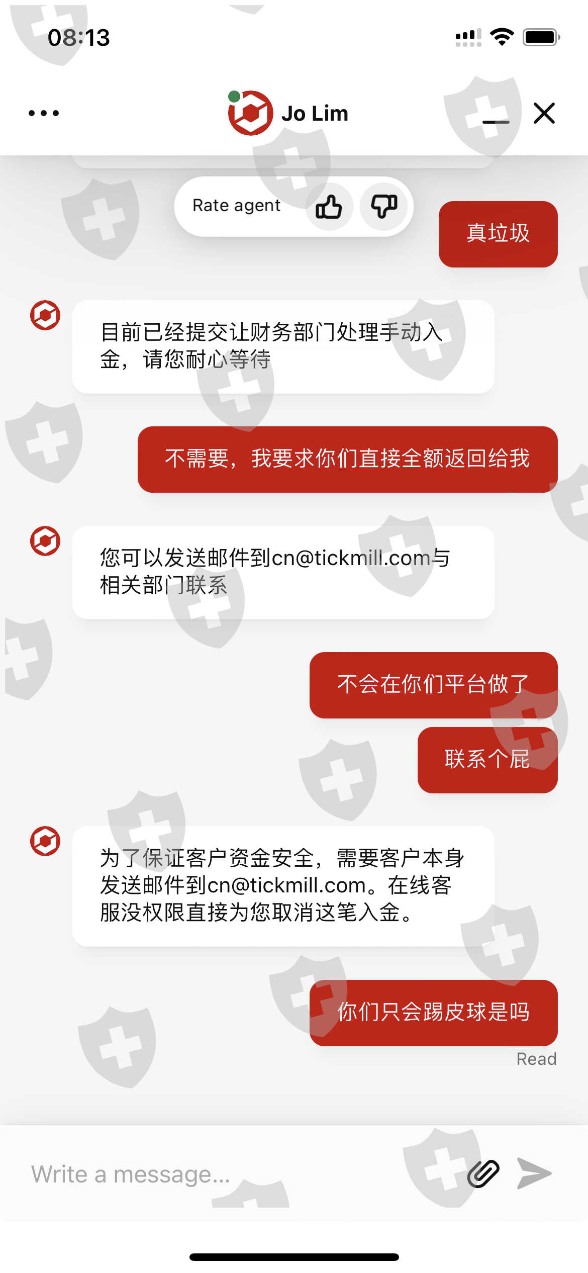 入金写着立刻,结果一天还没处理好,大家不要被骗了,入金入了一天了还没到账,现在要求他们退还,只会踢皮球,邮件也不回复纯属垃圾到不能再垃圾的公司了