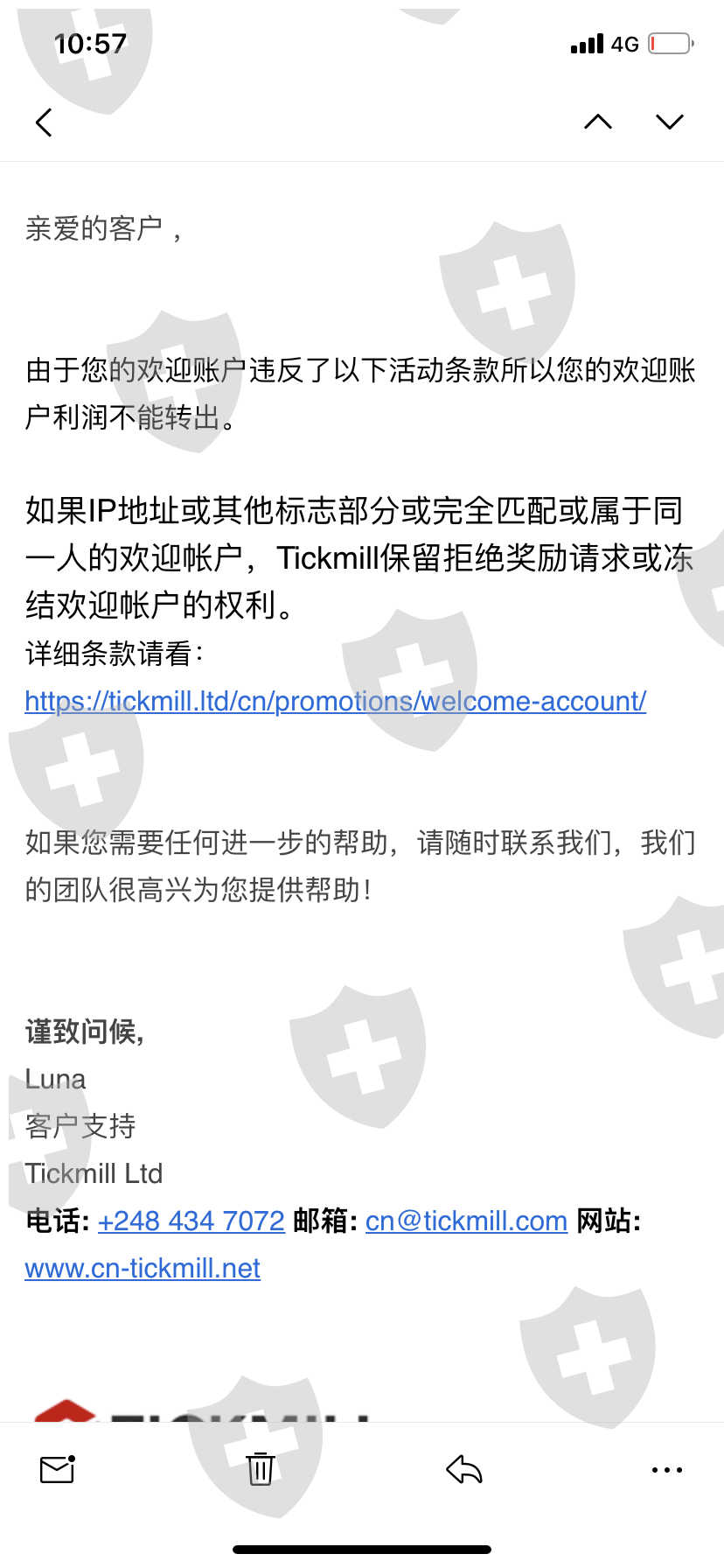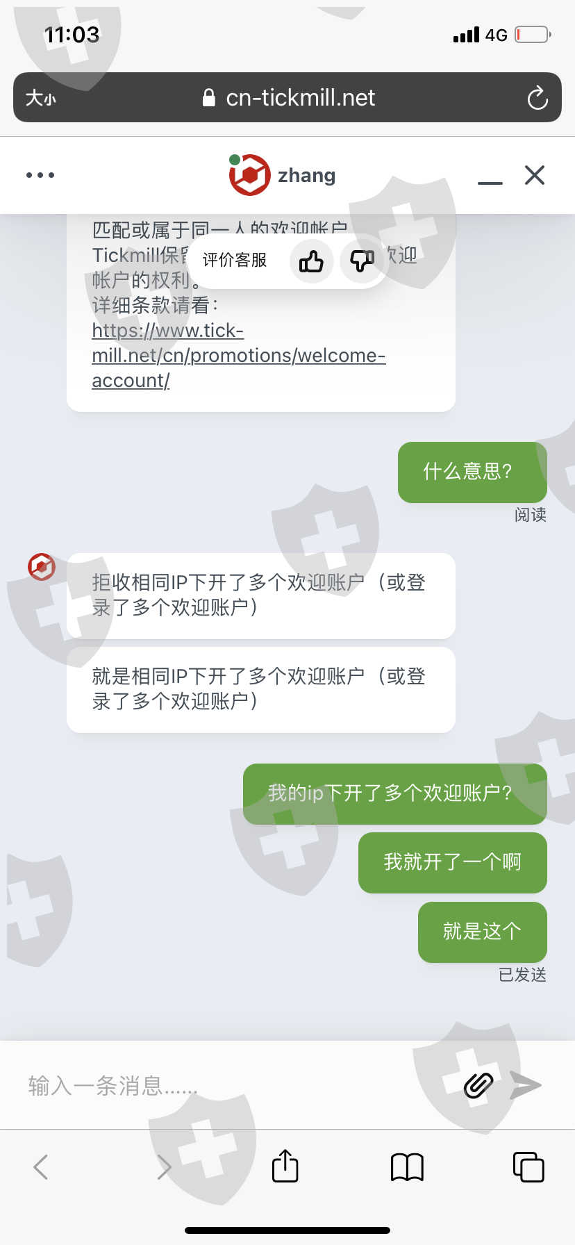 使用增金账户进行交易盈利76美金以后申请转移盈利到真实账户结果出现问题了,说我申请使用了多个欢迎账户进行交易盈利但是他又拿不出来证据只说他们系统检测到的,开始就一直拖说一到三个工作日转移成功,结果到了第三天又说一个工作日,然后又说一个工作日,最后没有具体时间到现在直接不给,不给就不要发出来忽悠人,增金账户也被直接封号了进不去。