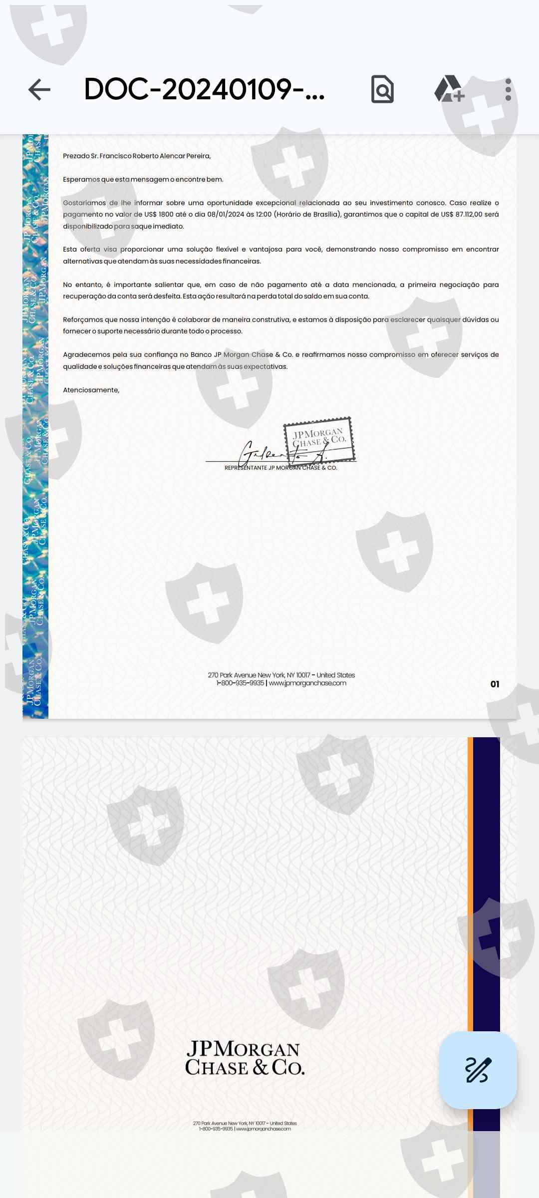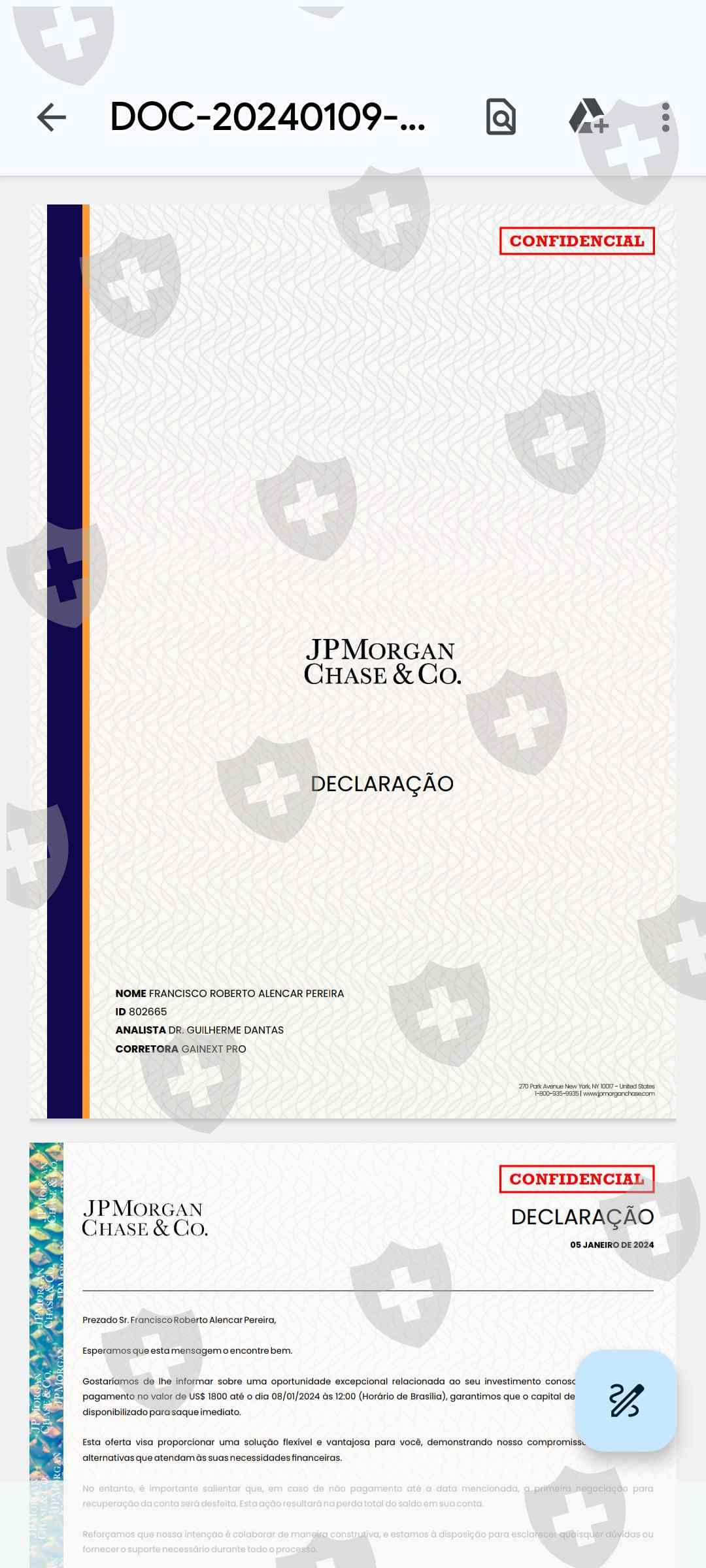 这个经纪人偷走了我所有的钱,总共 61,000 美元,他们先偷了我,然后使用 META 5 交易账户 802665 将我的账户迁移到另一个 OBV MARKETS 平台;在他发给我的文件中,他说这是来自摩根大通的,我的帐户的分析师经理吉列尔梅·丹塔斯(Guilherme Dantas)称为 GAINEXT PRO 分析师,他们正在利用摩根大通银行的名义进行诈骗,如果摩根大通银行成为,退款将给骗局以可信度意识到这些骗局,如果我不采取行动,遵守 PS 骗局,我希望有人能够对这些诈骗者采取行动,我不知道除了我之外还有谁,金额为 61,000 美元