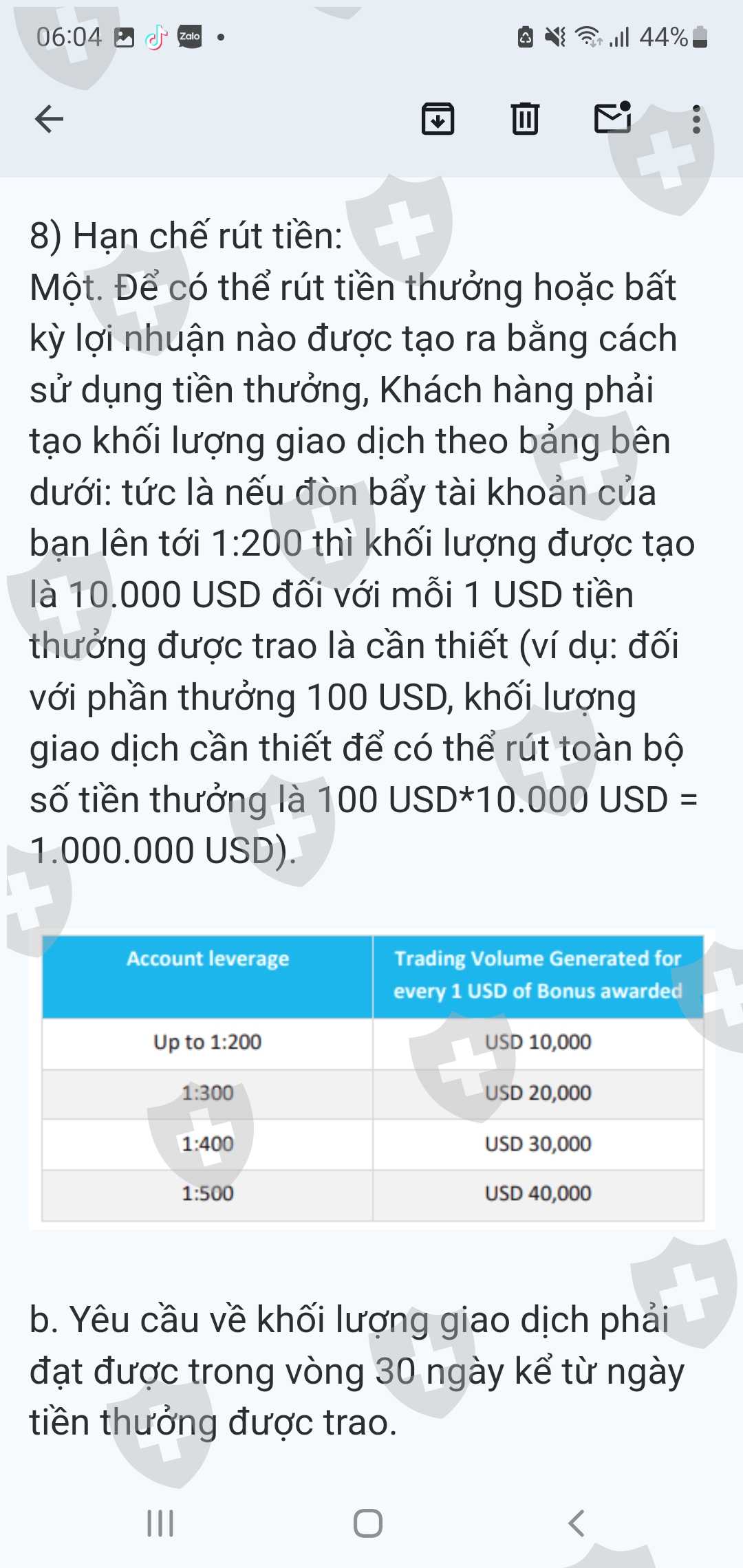 sàn yêu cầu khối lượng lớn mới cho rút tiền.