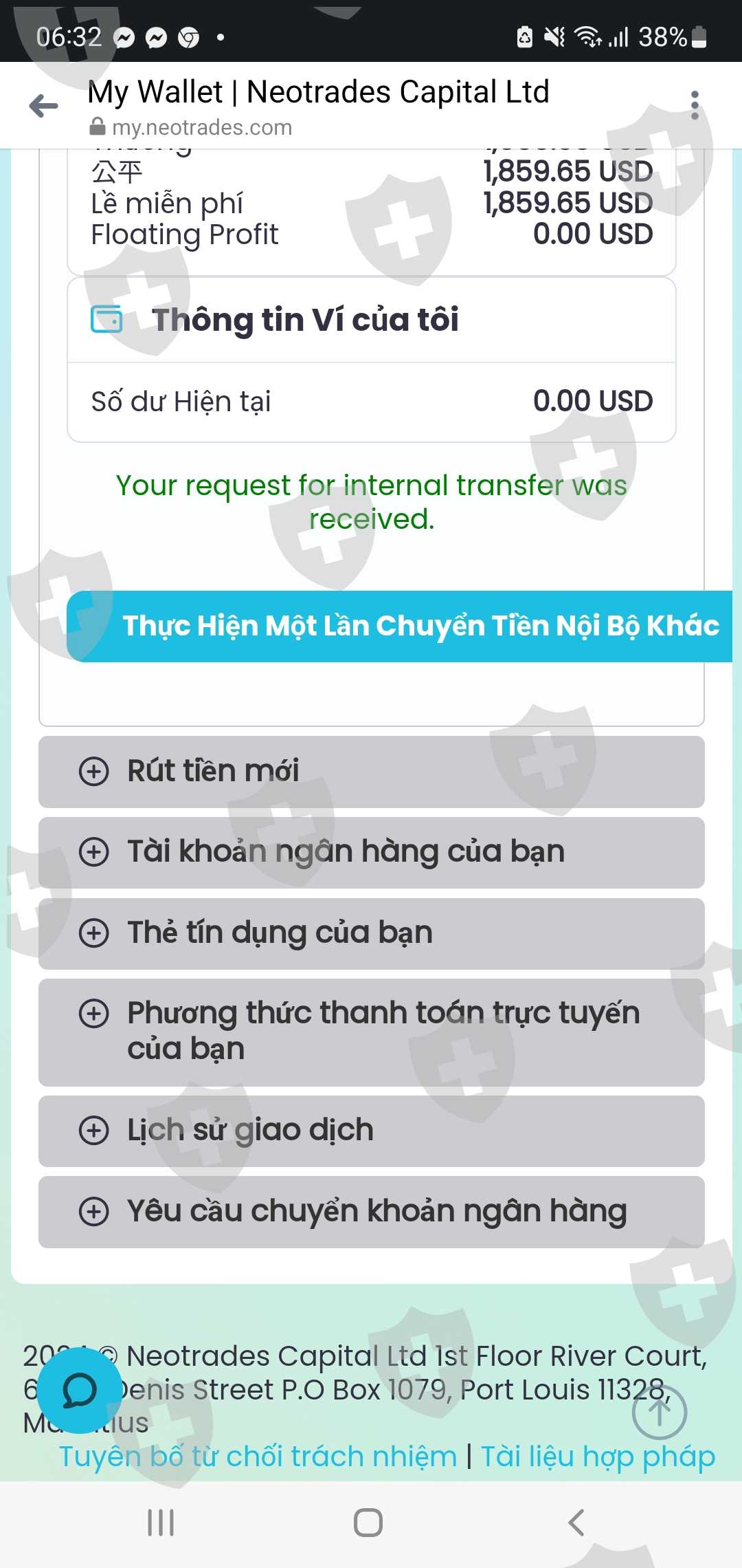 sàn neotrades lừa đảo tôi vừa mới nạp tiền sàn khóa không thực hiện lệnh chuyển tiền nội bộ, không thực hiện được lệnh rút tiền, và yêu cầu khối lượng lớn mới cho rút tiền vốn, tôi sẽ báo kiện công an làm việc với sàn neotrades văn phòng thành phố hồ chí minh.