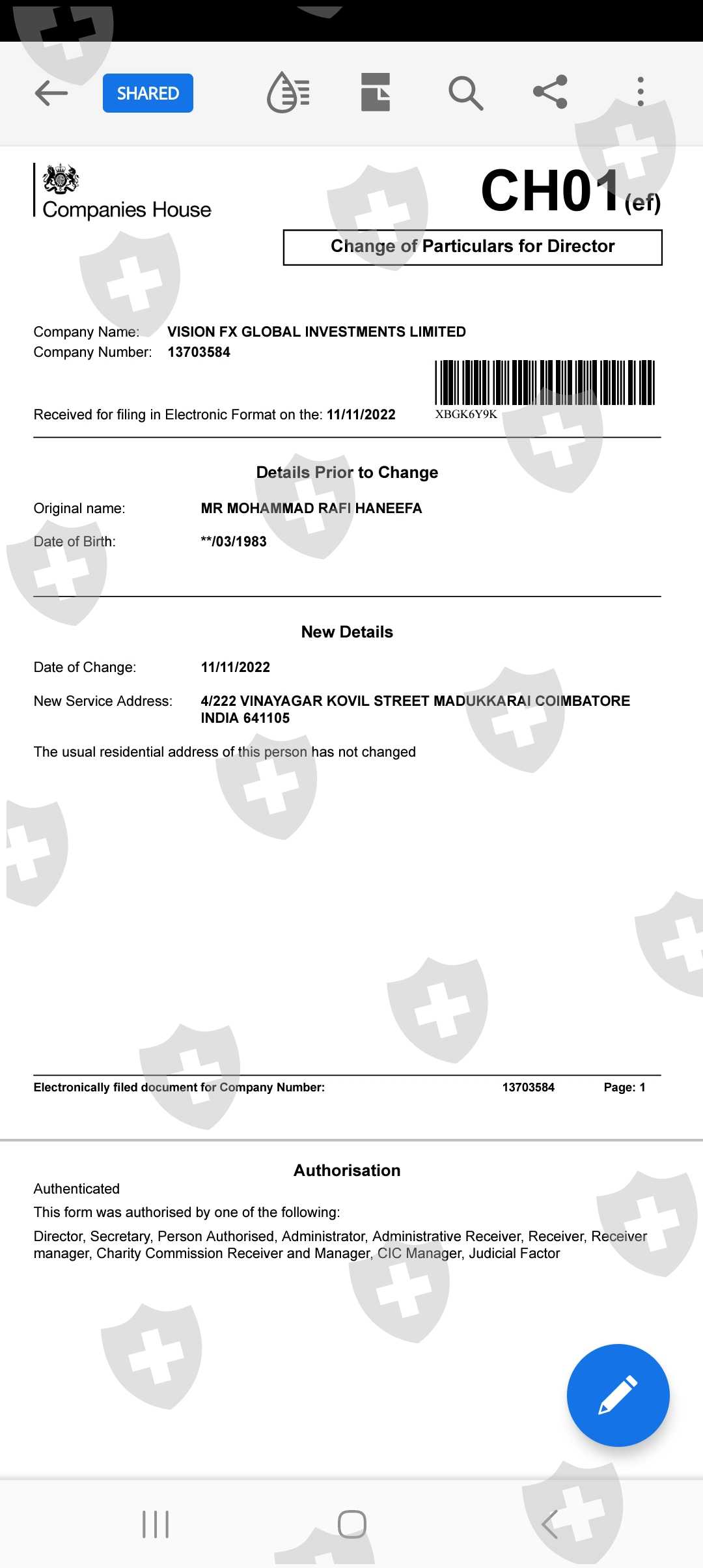 董事哈尼夫·穆罕默德·拉菲先生有多家公司。